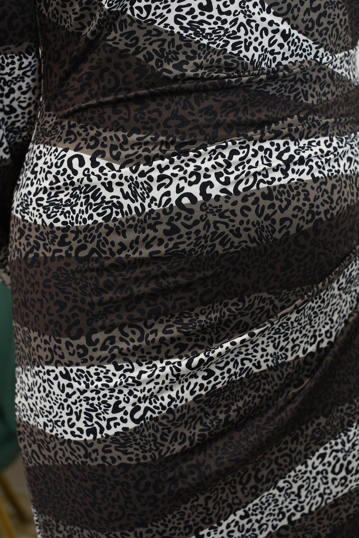 K.Design Kleid mit mehrfarbigem, braun gestreiftem Animalprint – Z146