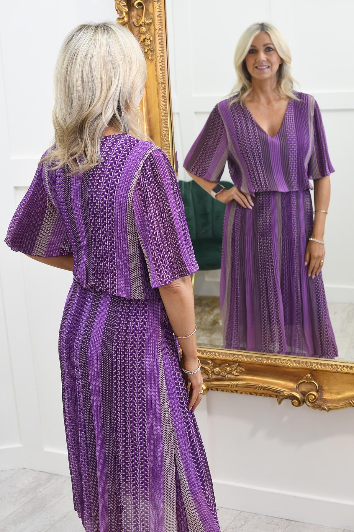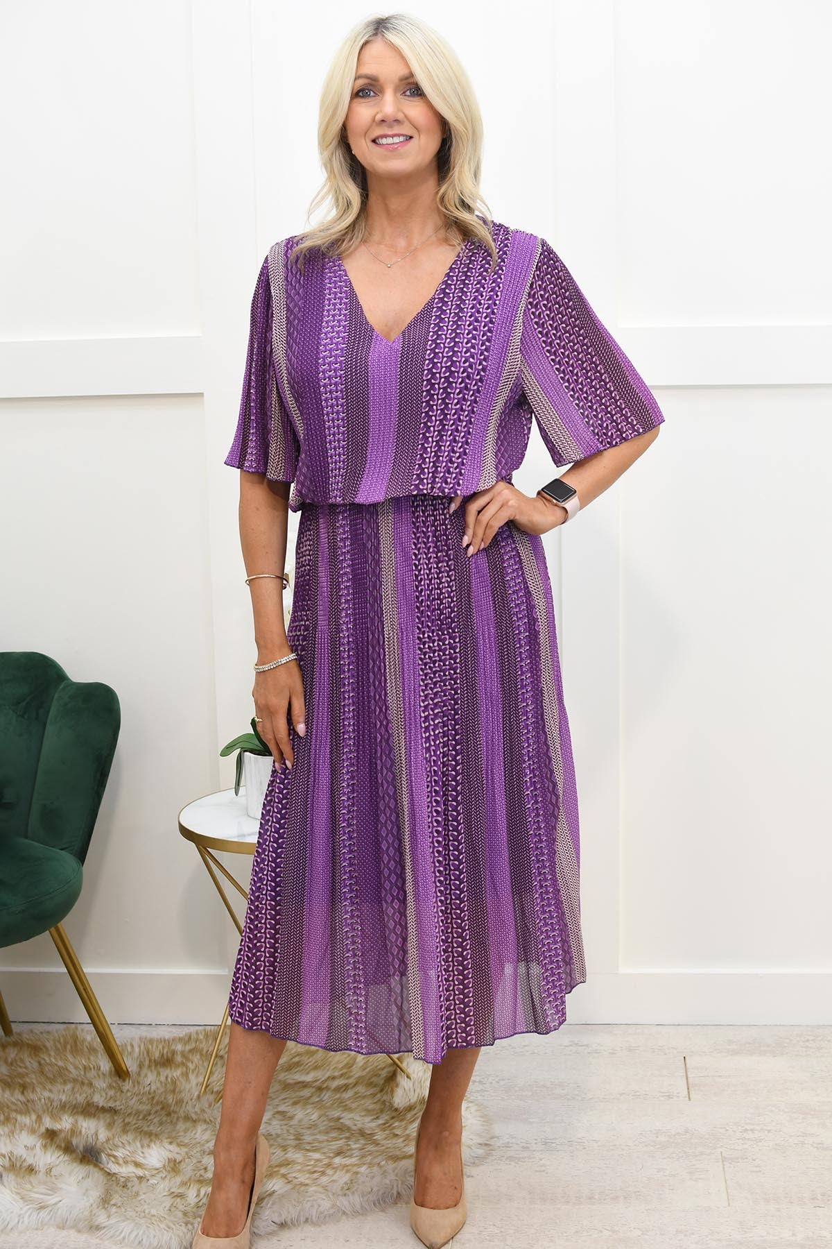 Kyla Plissee-Kleid mit mehrfarbigem Lila-Mix-Print – 5709