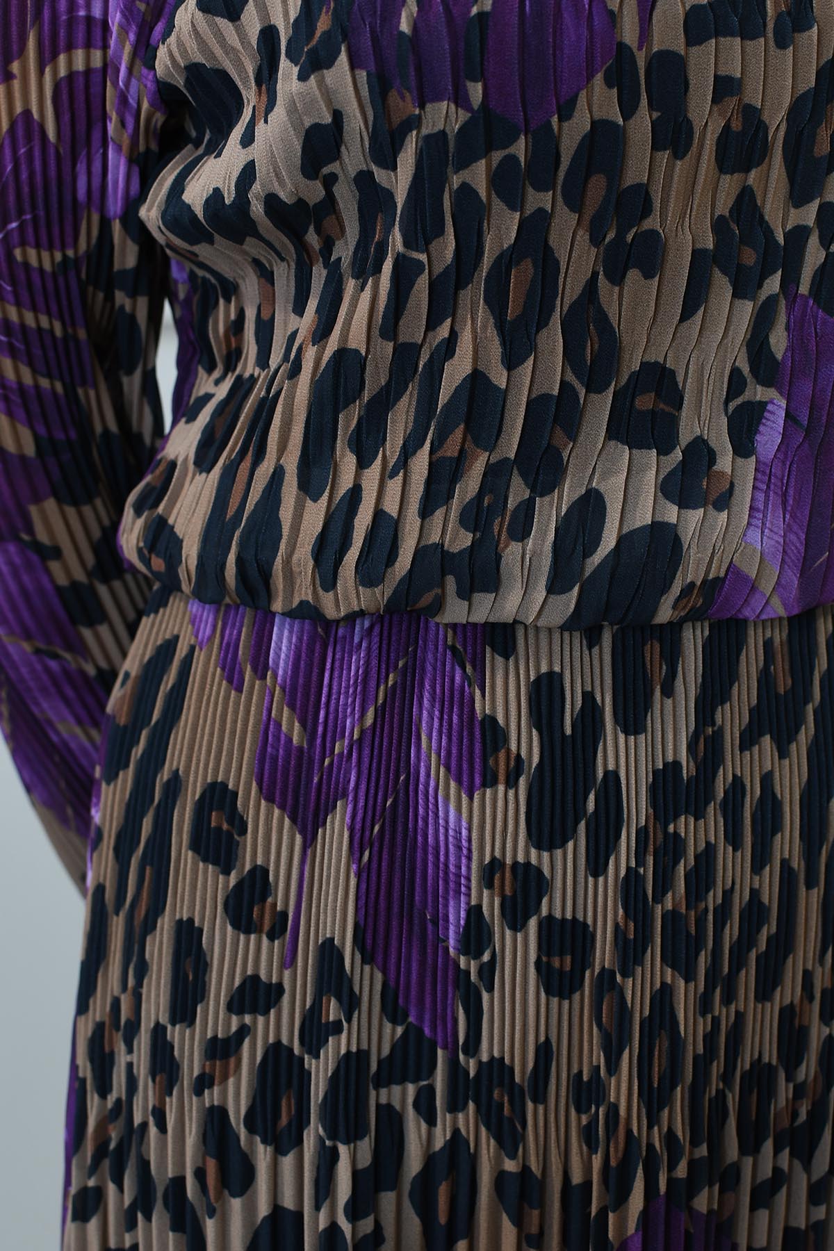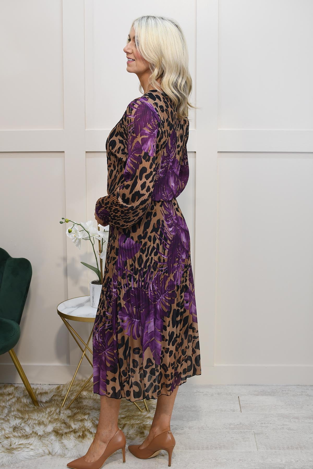 Kyla Lila Plissee-Kleid mit Blumen- und Leopardenmuster – 6809