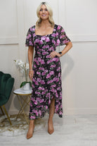 Girl In Mind – Heidi – Lila, geblümtes, gerüschtes Midikleid