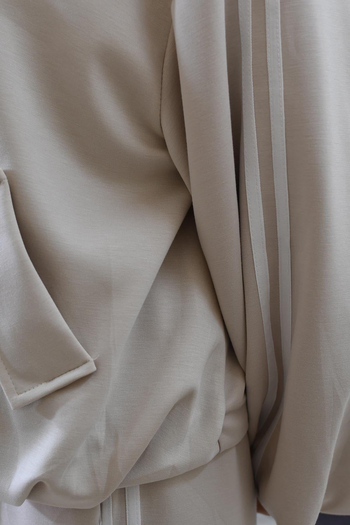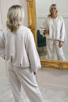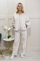Kyla Beige Lounge Set With Balloon Sleeve Jacket & Wide Leg Trousers- 60160