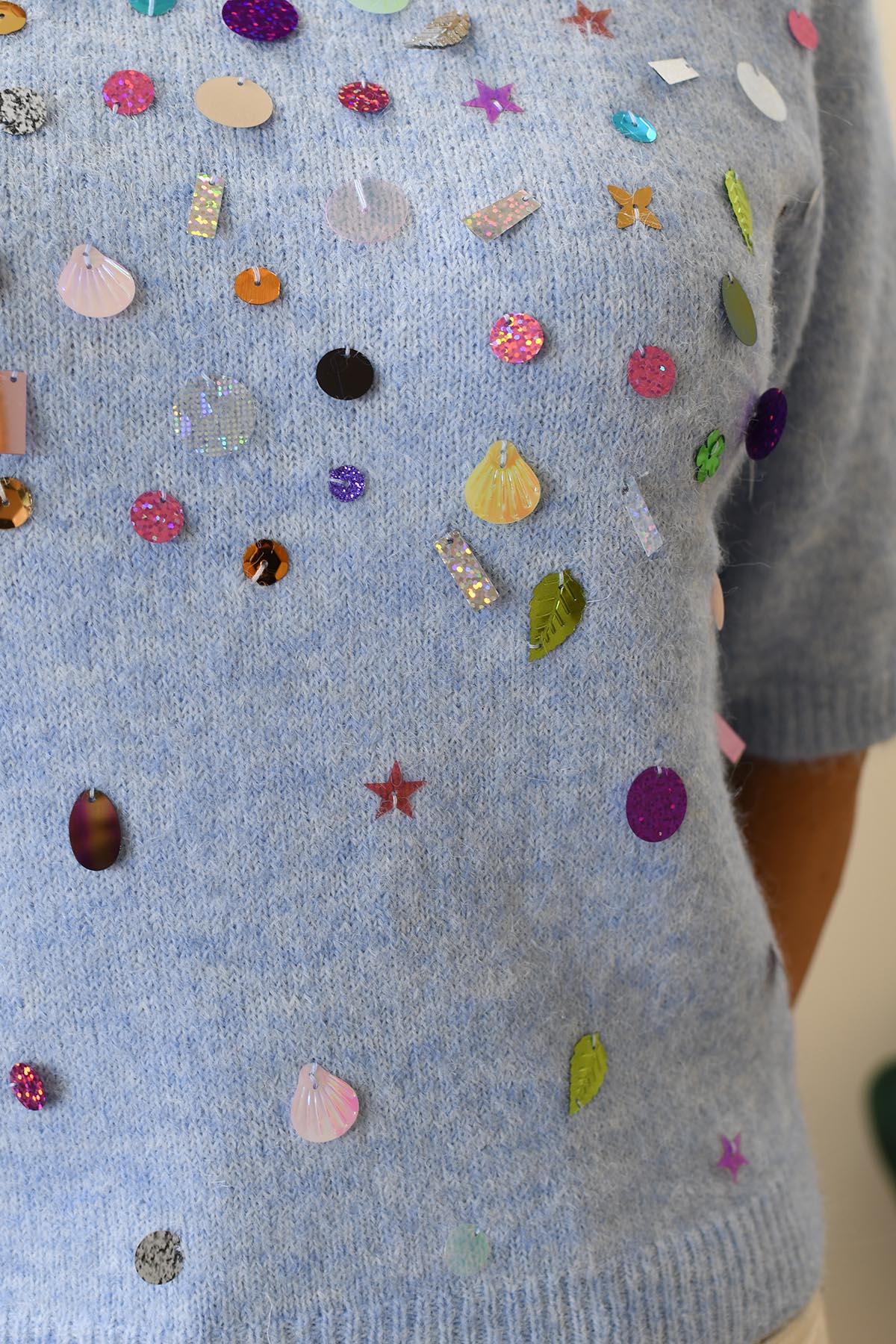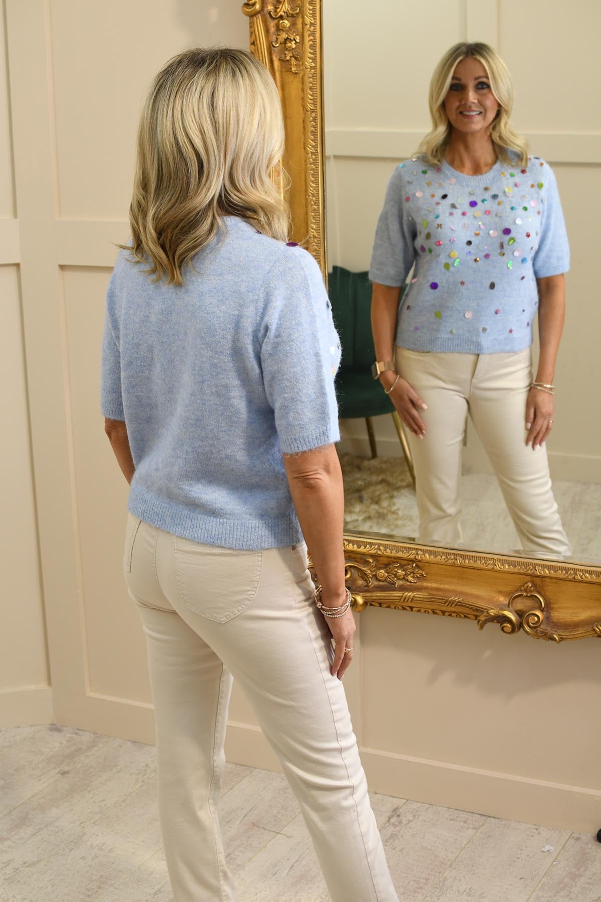 Kyla Powder Blue Knit Top With Sequin Detail-PT10029
