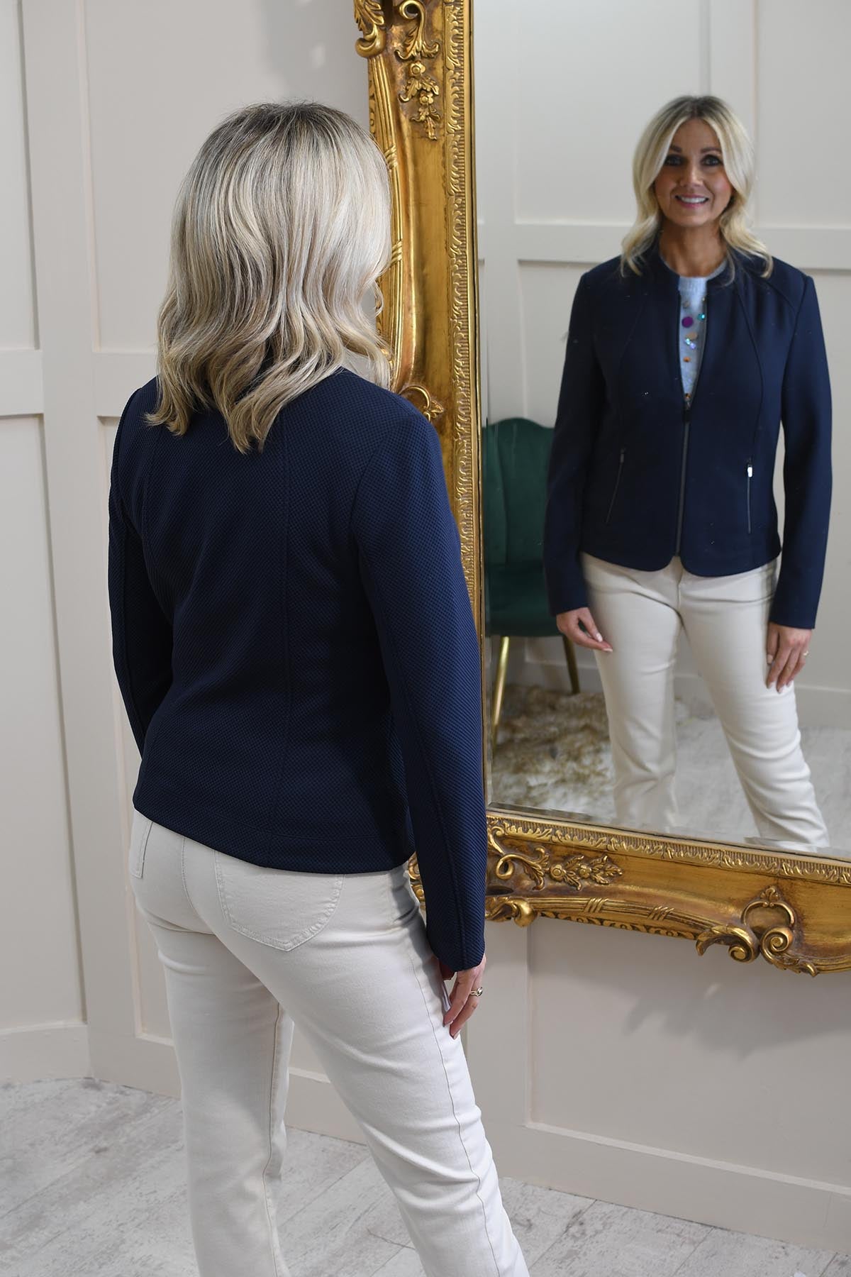 Barbara Lebek Navy Textured Zip-Up Jacket -85090052