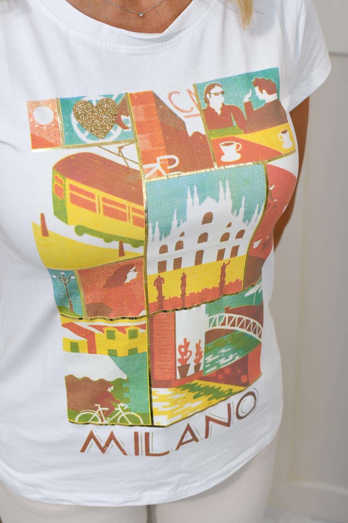 Elevate your everyday style with the Kyla 'Milano' Graphic T-Shirt by Mita. Crafted from soft, breathable cotton, this tee offers all-day comfort with a relaxed yet flattering fit. The bold 'Milano' graphic across the chest adds a chic, European-inspired touch, perfect for casual days or layering under a blazer for a smart-casual look. Designed with versatility in mind, it pairs effortlessly with jeans, skirts, or joggers. Whether you're out exploring the city or relaxing with friends, the Kyla T-Shirt delivers effortless style and comfort. Make a statement without trying—this is your go-to tee for modern, laid-back fashion.