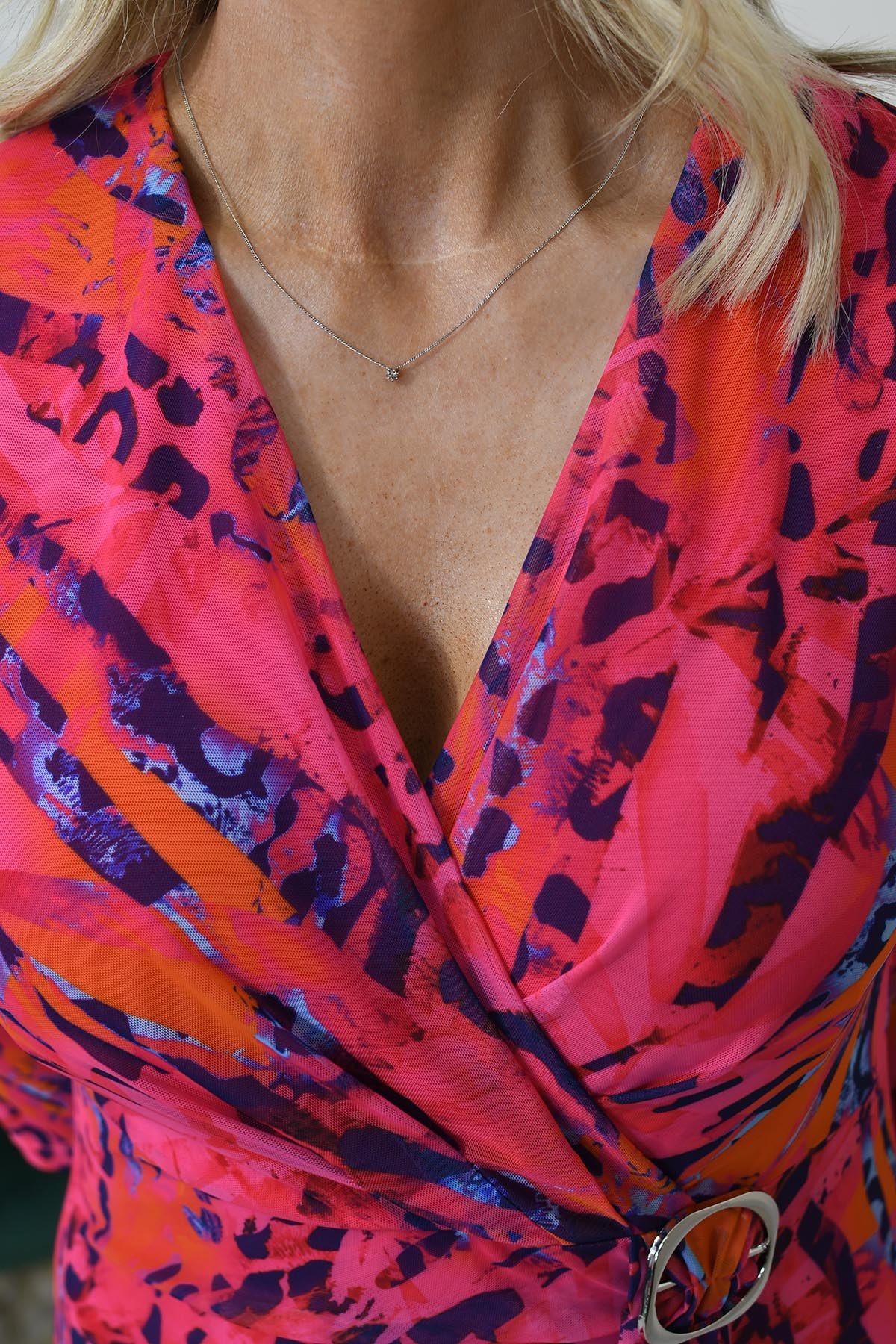 Avalon Abstract Animal Print Dress With Buckle Detail- Vivid Pink & Purple A124