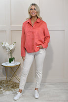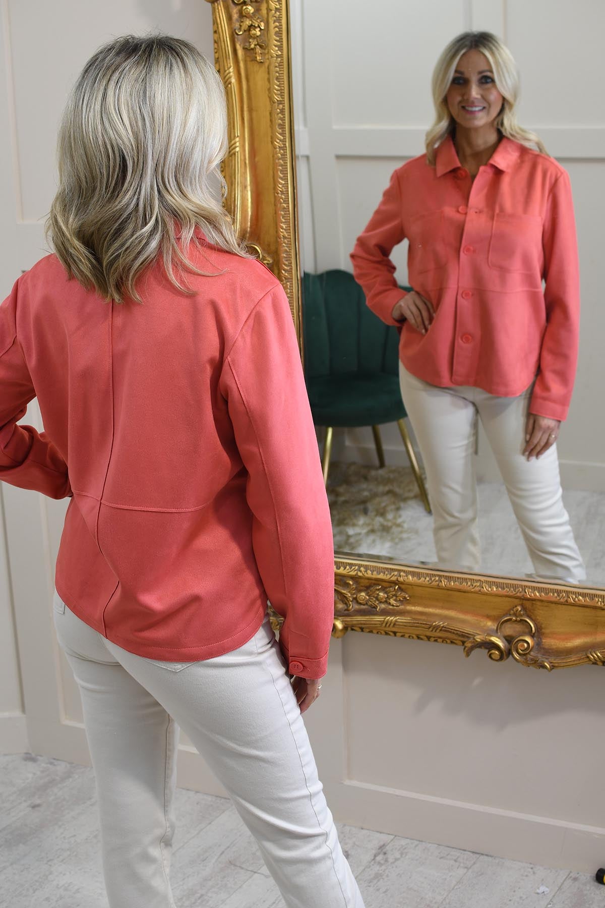 The Barbara Lebek Coral Faux Suede Shacket combines luxury, comfort, and modern style. Made from high-quality faux suede, this shacket offers a soft, smooth feel while providing the perfect balance of warmth and breathability. The vibrant coral colour adds a bold, contemporary touch, making it a standout piece in any wardrobe. Featuring classic button detailing, pockets, and a relaxed fit, this shacket is perfect for layering over casual or smart-casual outfits. Whether for day-to-day wear or special occasions, the Barbara Lebek Coral Faux Suede Shacket adds effortless style and sophistication.
