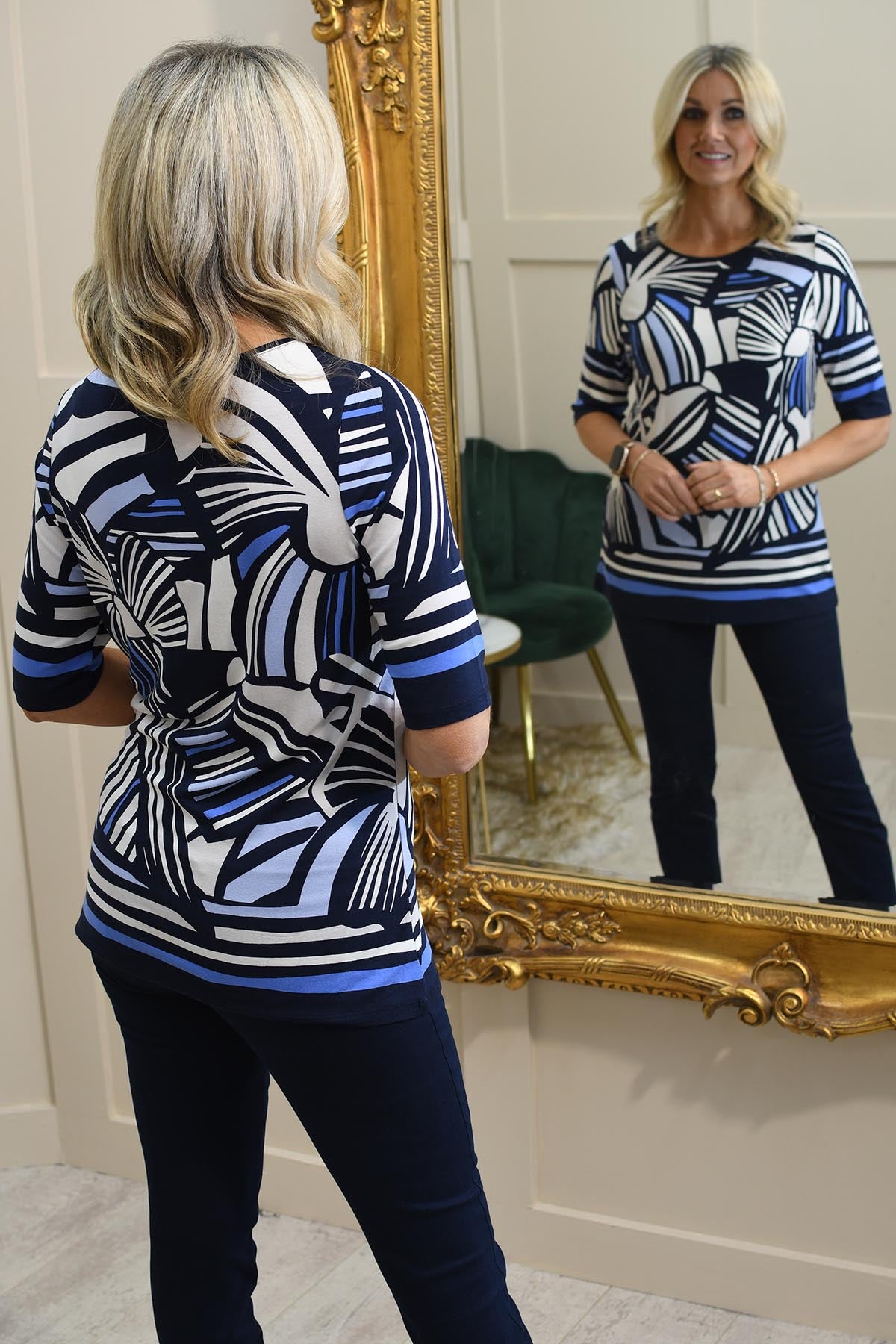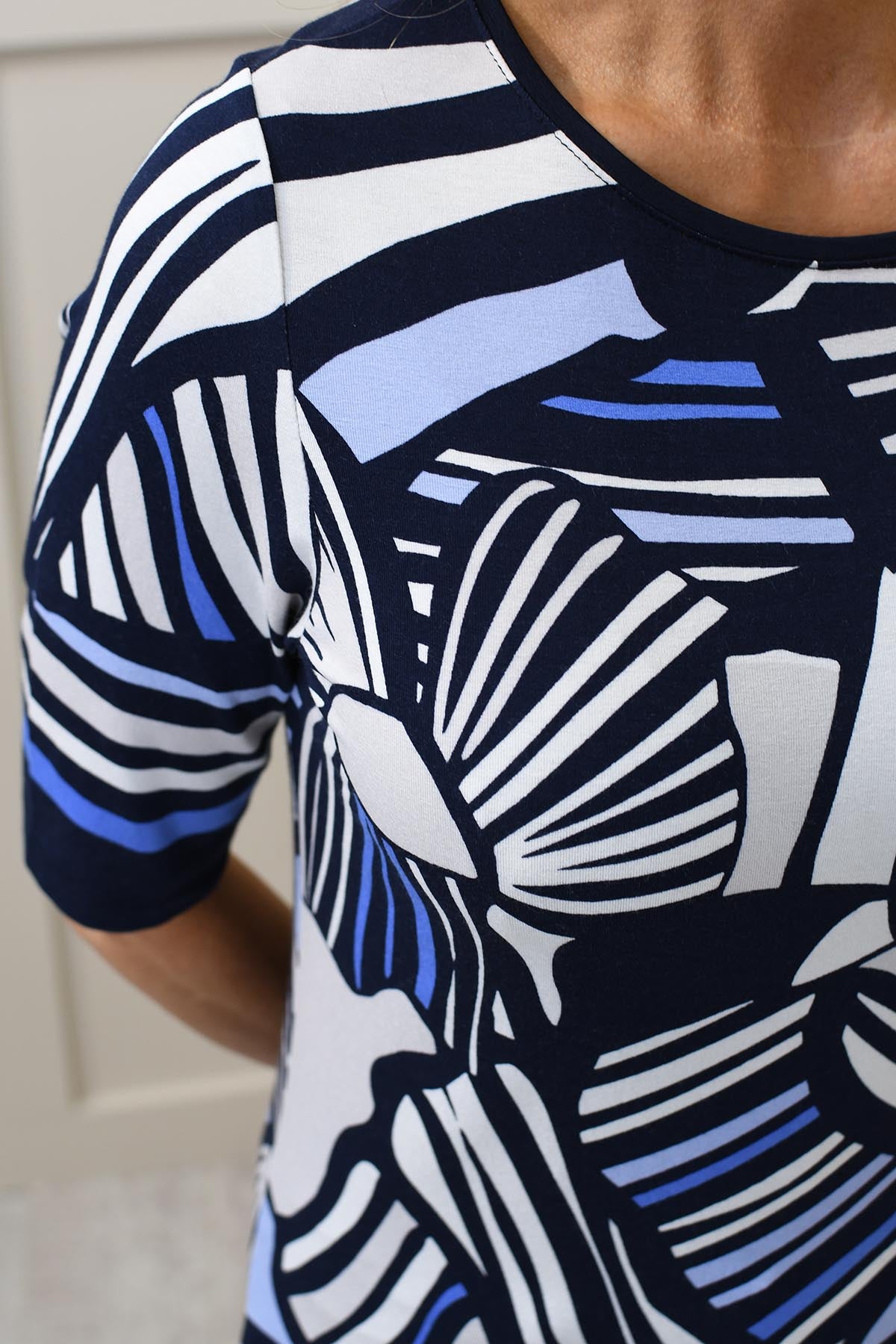 Barbara Lebek Navy, Blue & Off-White Abstract Print Top Description