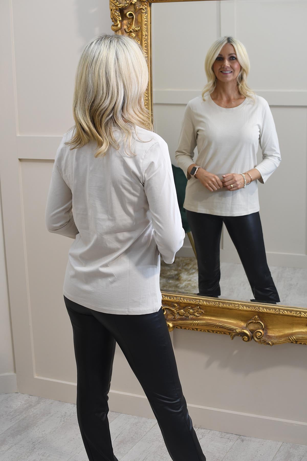 Das Betty Barclay Plain Oatmeal Top ist ein vielseitiges und zeitloses Must-have für Ihre Garderobe und perfekt für mühelose, minimalistische Looks. Dieses Top in einem weichen, neutralen Haferton bietet eine klare und anspruchsvolle Ästhetik, die sowohl elegant als auch leger getragen werden kann. Sein leichtes, atmungsaktives Gewebe sorgt für ganztägigen Tragekomfort, während die klassische, entspannte Passform für einen angenehmen Tragekomfort sorgt. Dieses schlichte Top ist ideal zum Tragen in mehreren Lagen oder allein und passt gut zu allem, von Jeans bis hin zu maßgeschneiderten Hosen. Damit ist es ein Must-have für jede Jahreszeit und jeden Anlass.