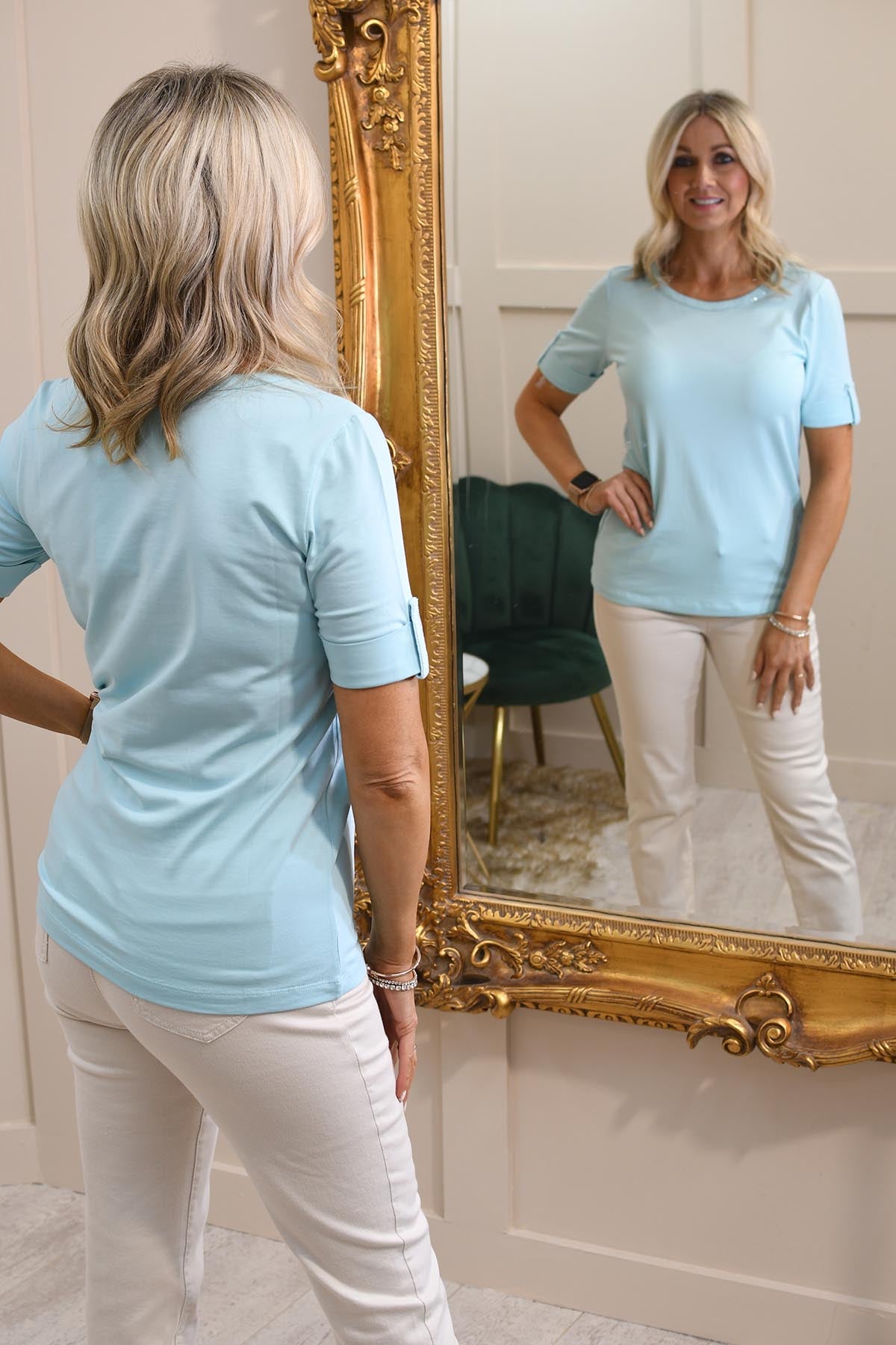 Bianca Aqua Top With Stud Neck & Sleeve Detail - 56026 41 416 Dinia