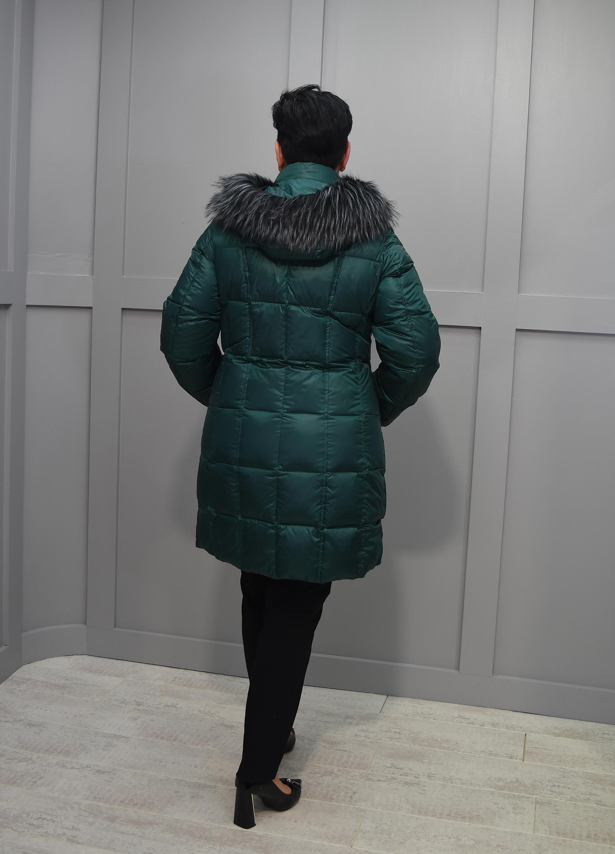 Frandsen Smaragdgrüner wattierter Mantel mit Kunstpelzkapuze-12580 89