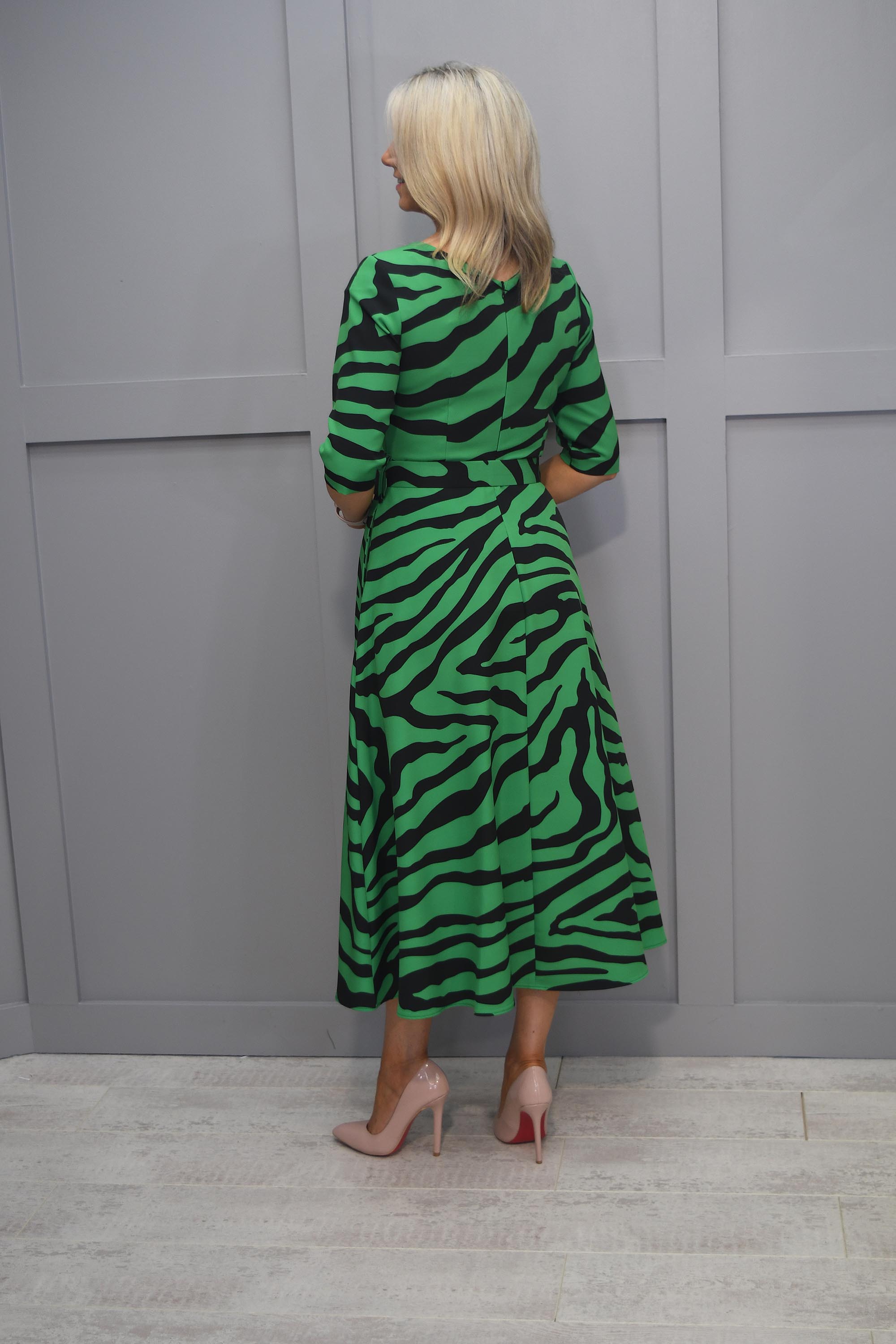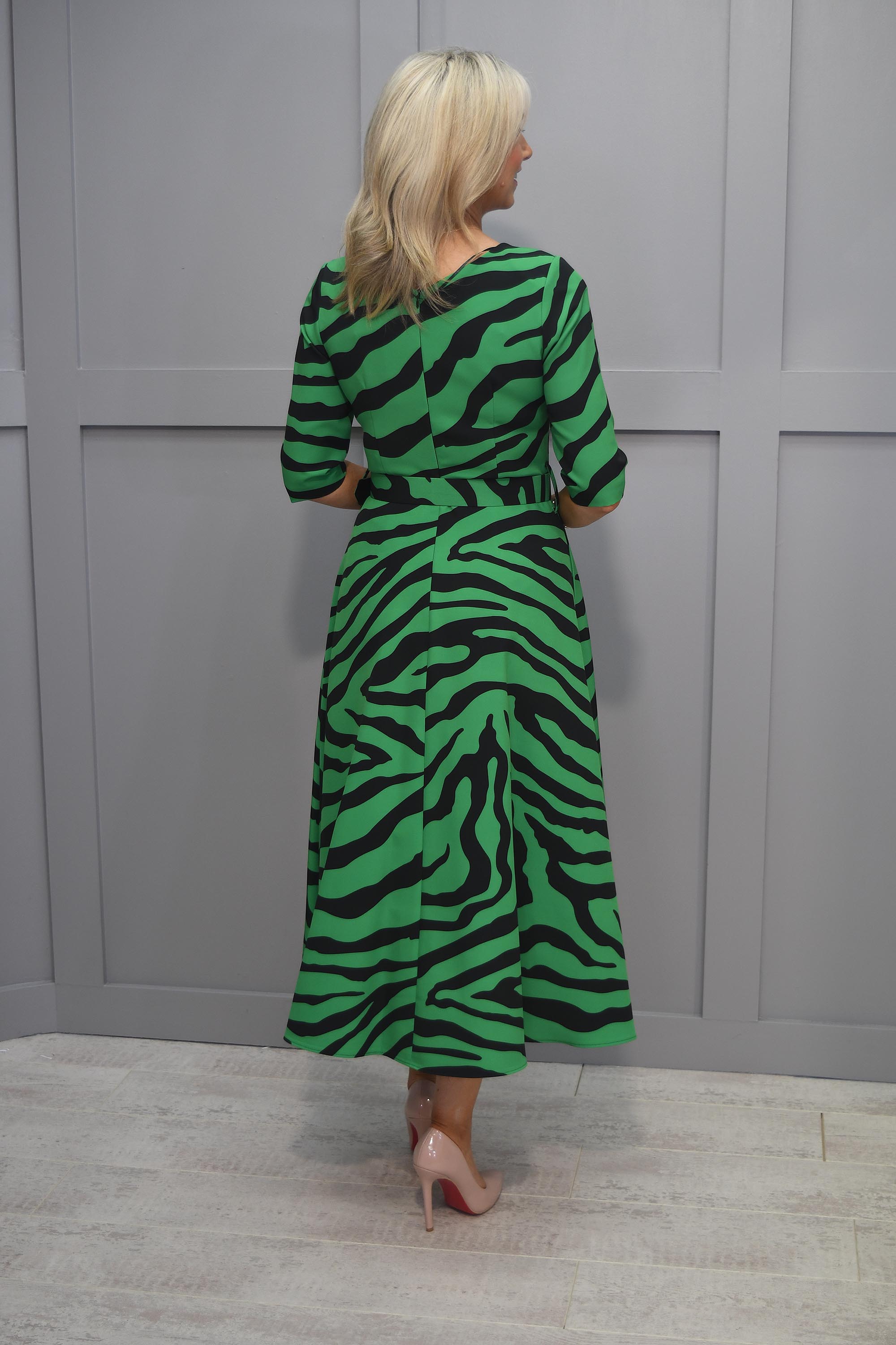 Kate Cooper Grün-Schwarzes Print-Aline-Kleid mit Gürtel – KCAW23159
