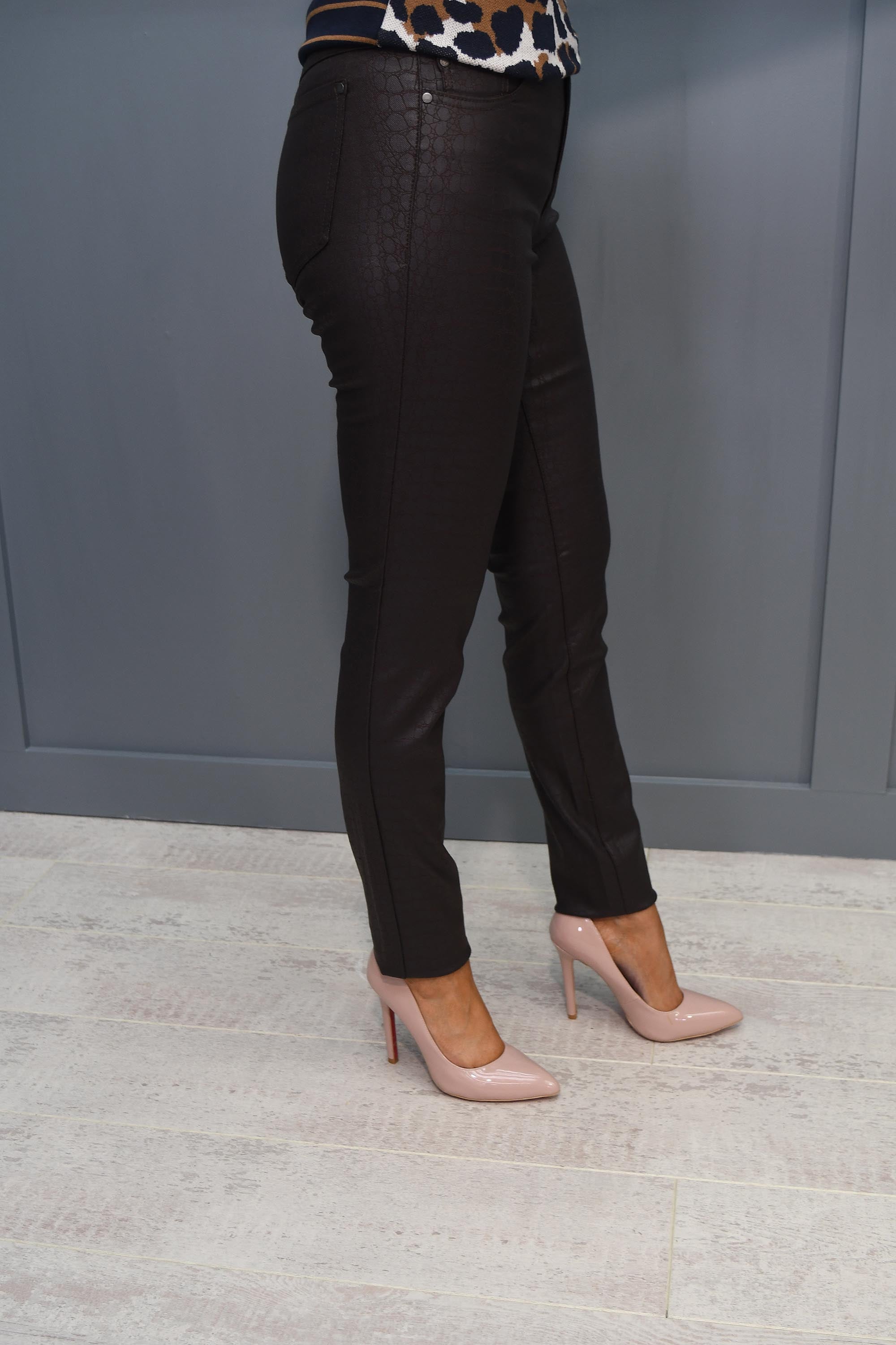 Diese Jeans aus Kunstleder sind eine modische Wahl, die Selbstbewusstsein ausstrahlt. Der satte Braunton passt zu vielen Outfits und macht sie zu einer vielseitigen Ergänzung für Ihre Garderobe. Egal, ob Sie einen lockeren Ausflug oder eine schicke Veranstaltung planen, diese Hose ist Ihre erste Wahl.