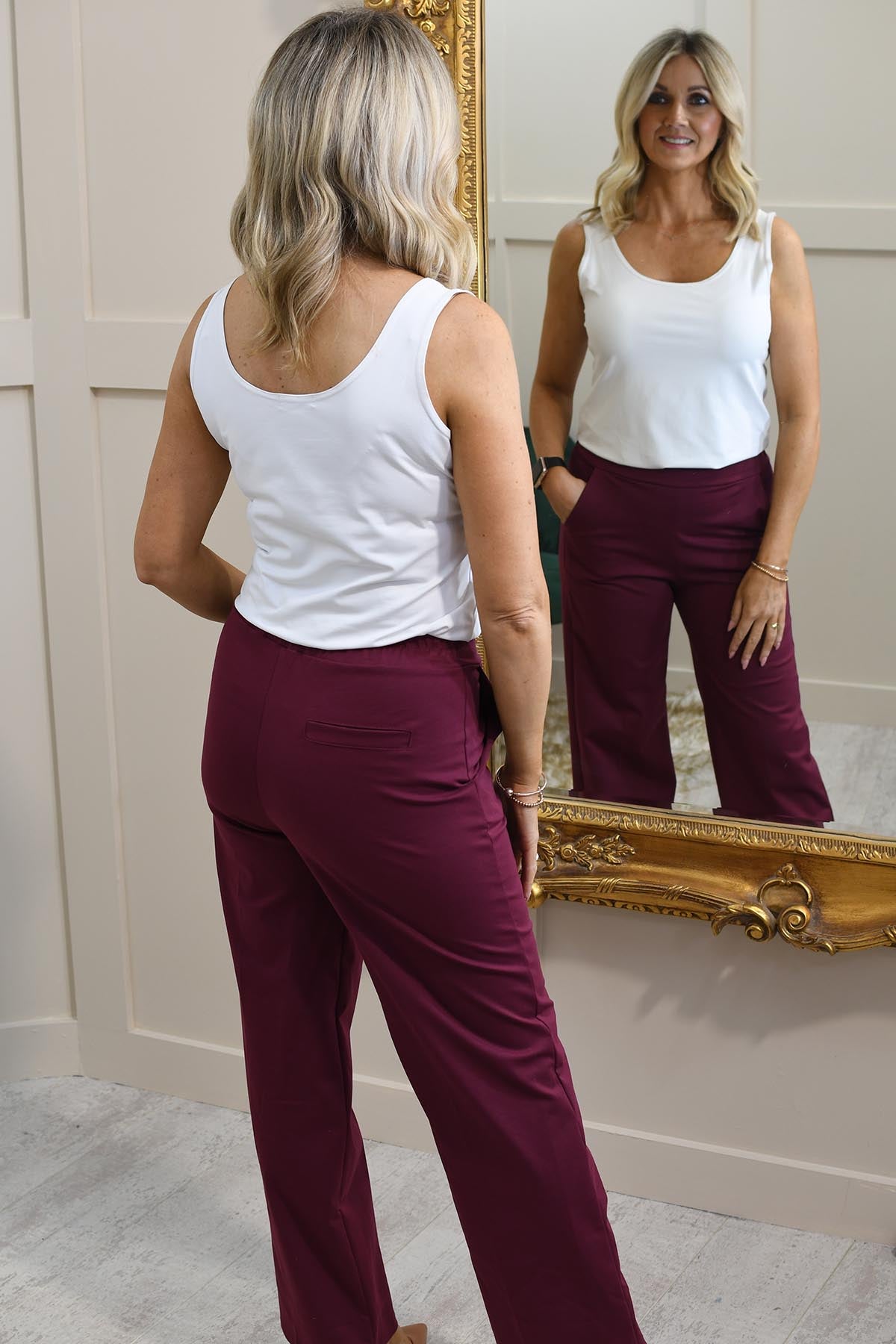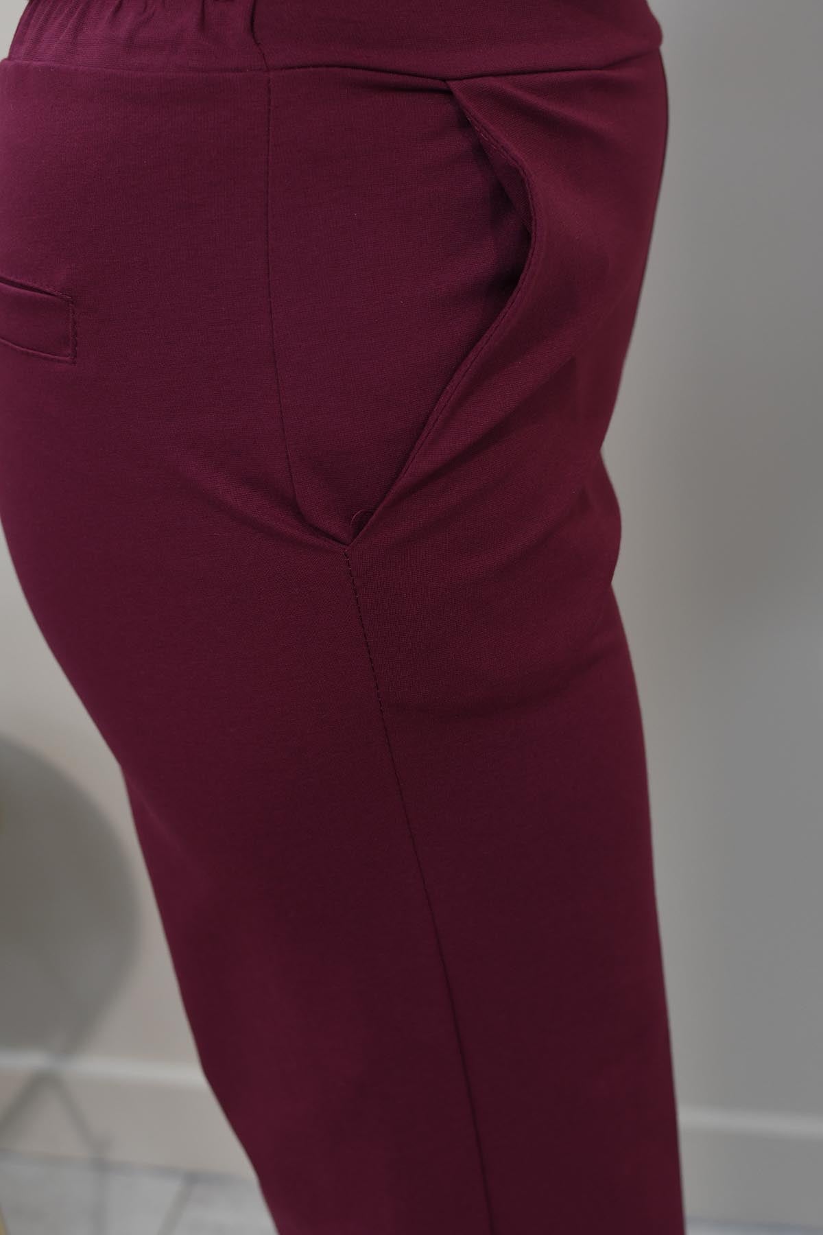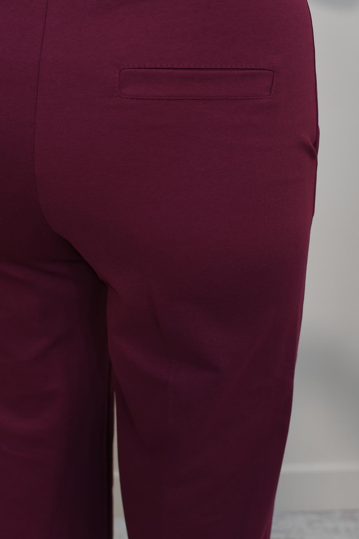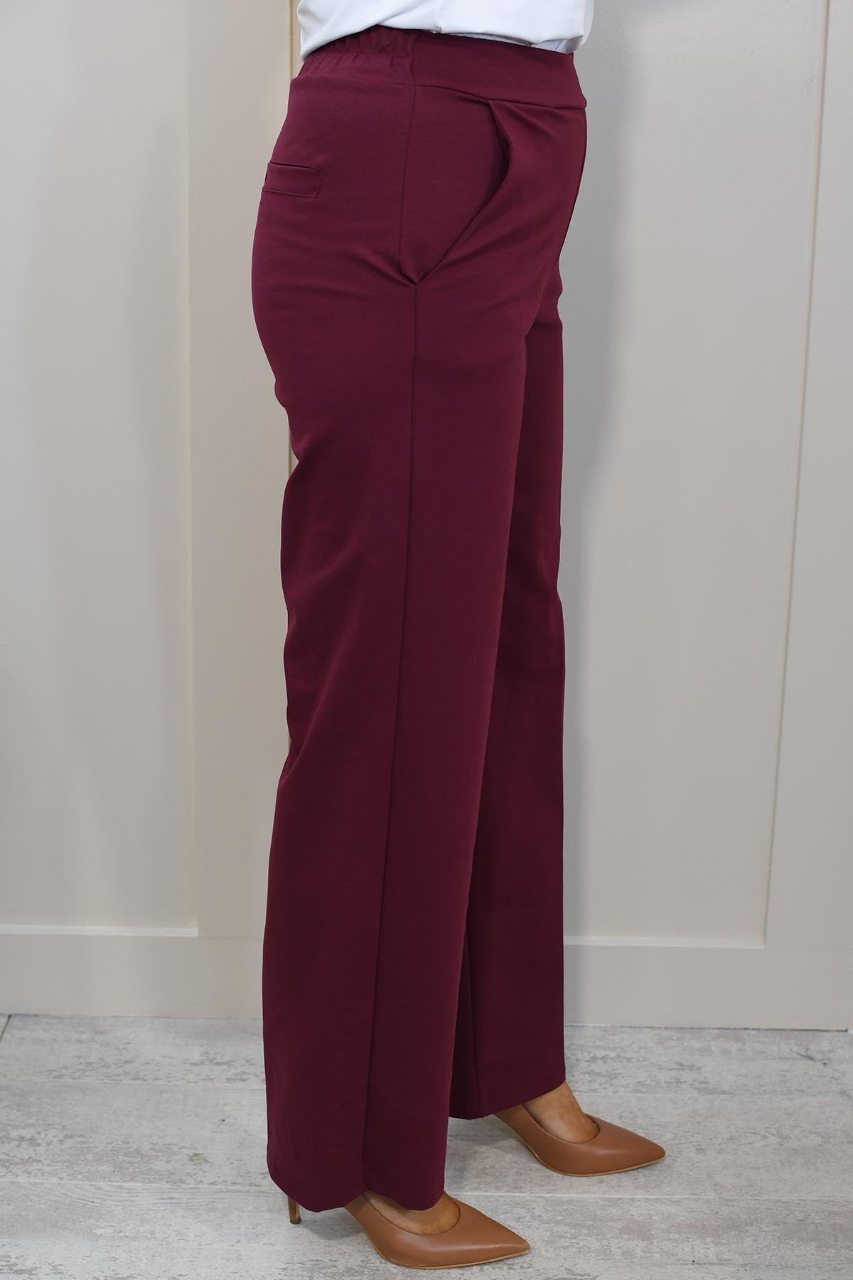 Decollage Burgundy Wide Leg Trousers With Elasticated Waist-2435