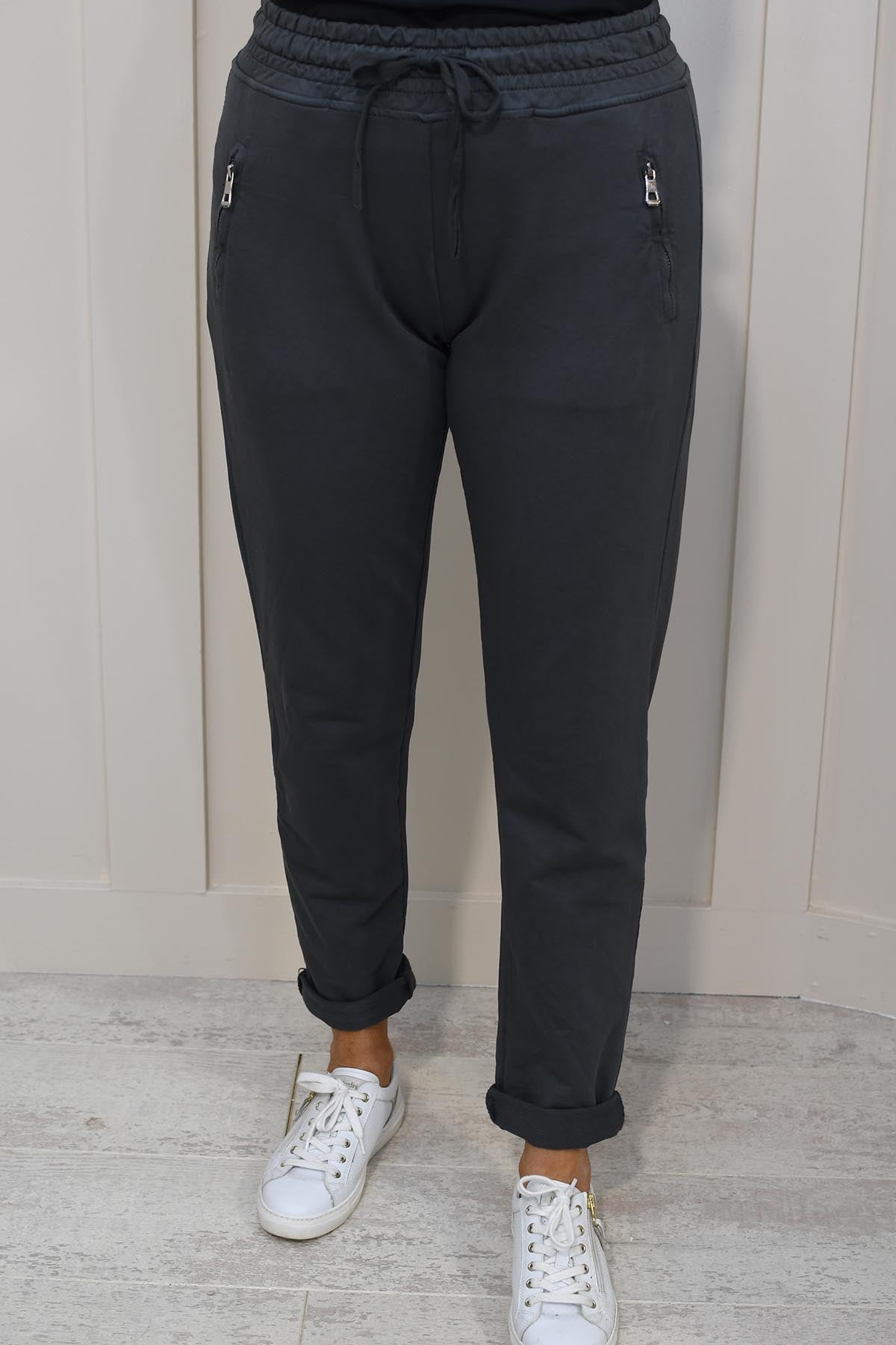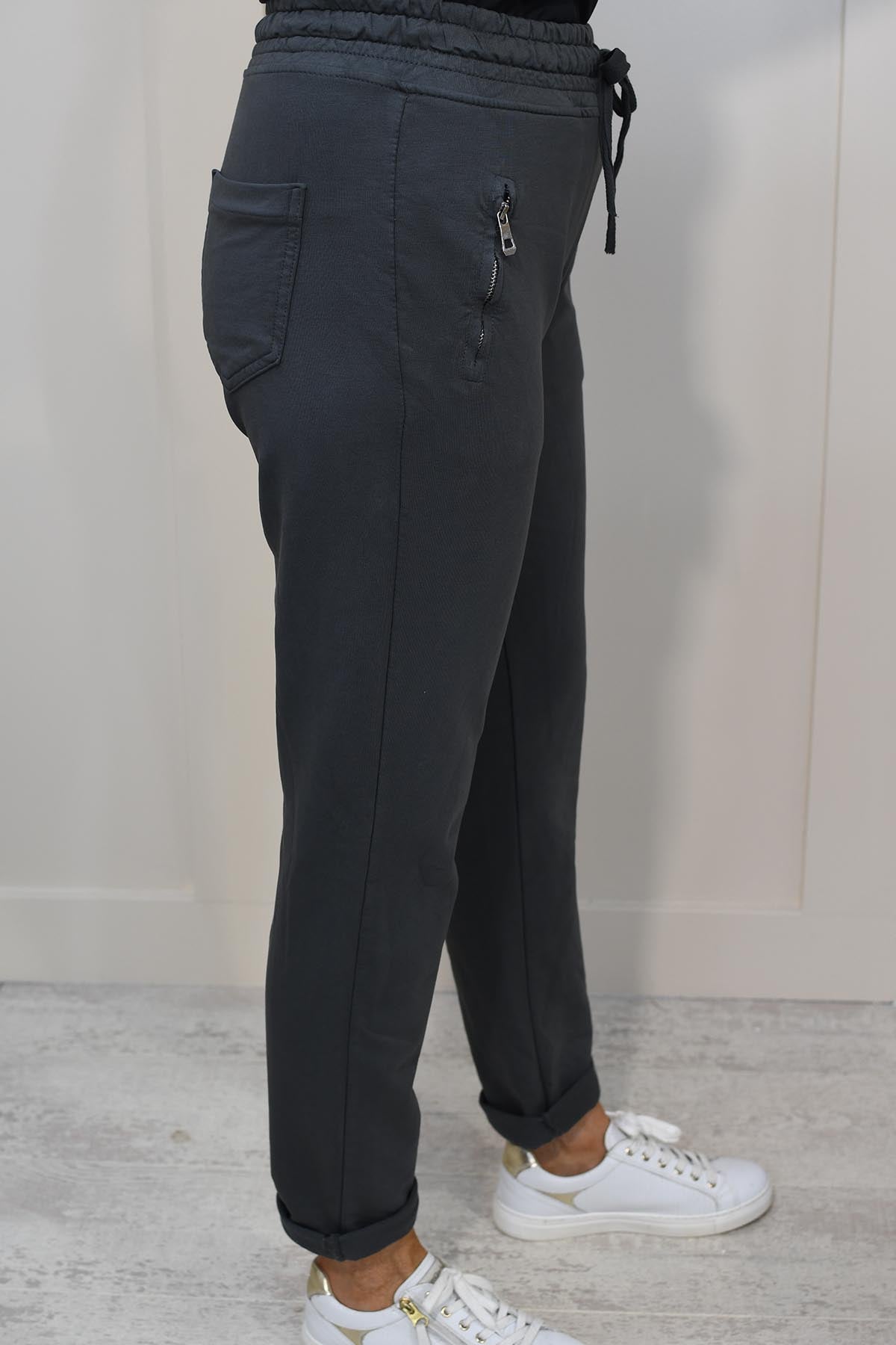 Decollage Trousers With Elasticated Waist & Pockets-Slate Grey 814136