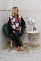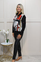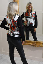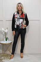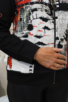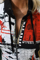 Dolcezza 'Bookworm' Abstract Art Zip-Up Jacket- Black, White & Red 75645