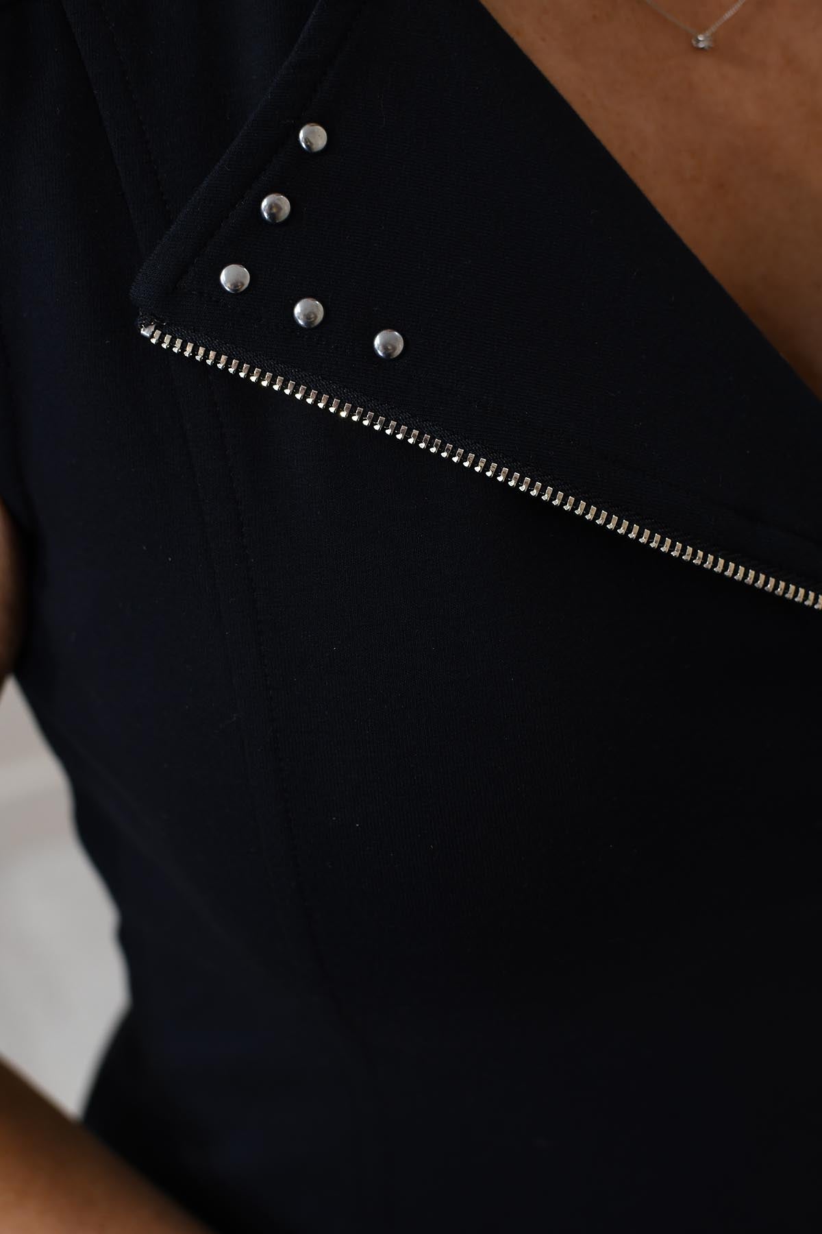 Dolcezza Navy Biker Jacket Dress With Pockets Description