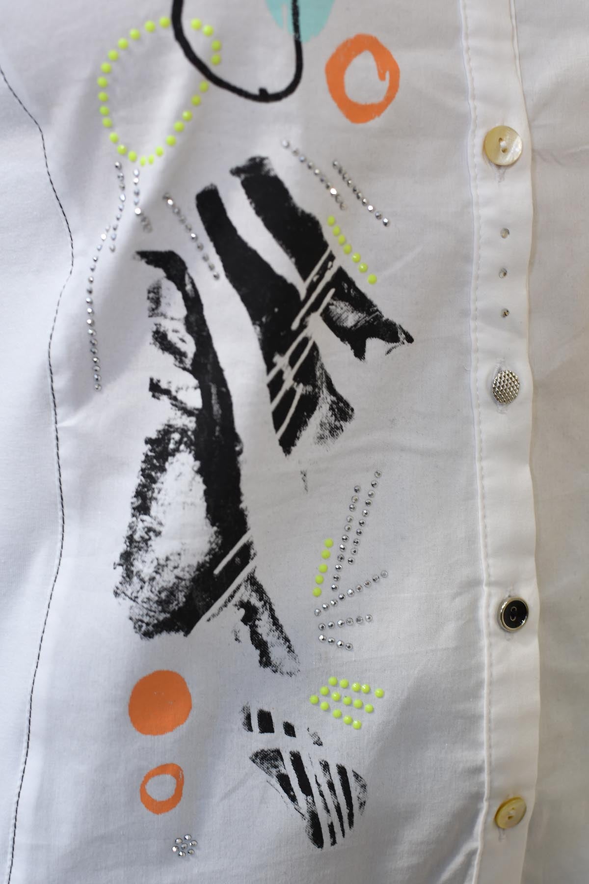Dolcezza Orange, Mint & Yellow Abstract Print Stretch Shirt-25604