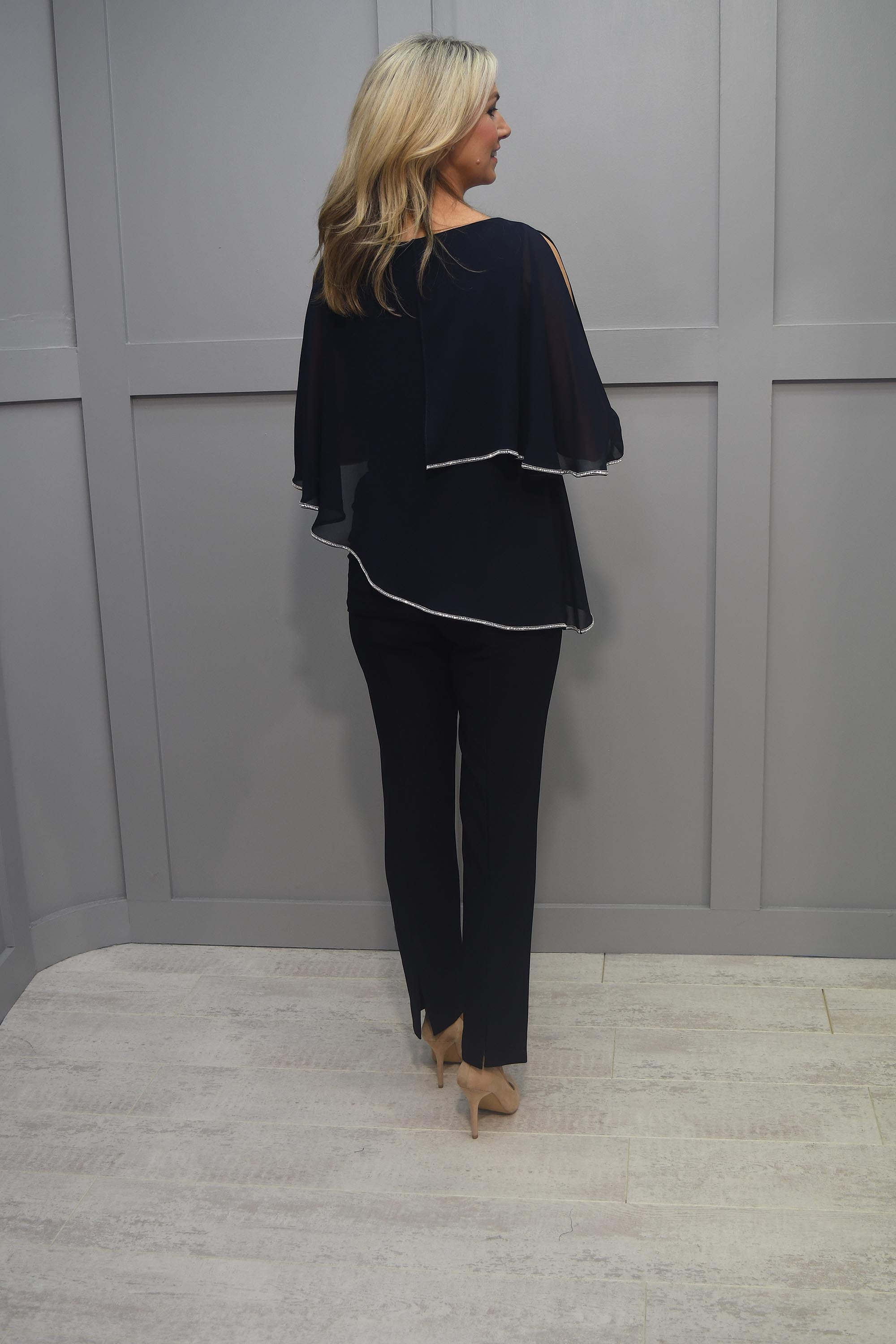 Joseph Ribkoff – Marineblaues Cold-Shoulder-Top mit Strass-Detail – 231720 2166