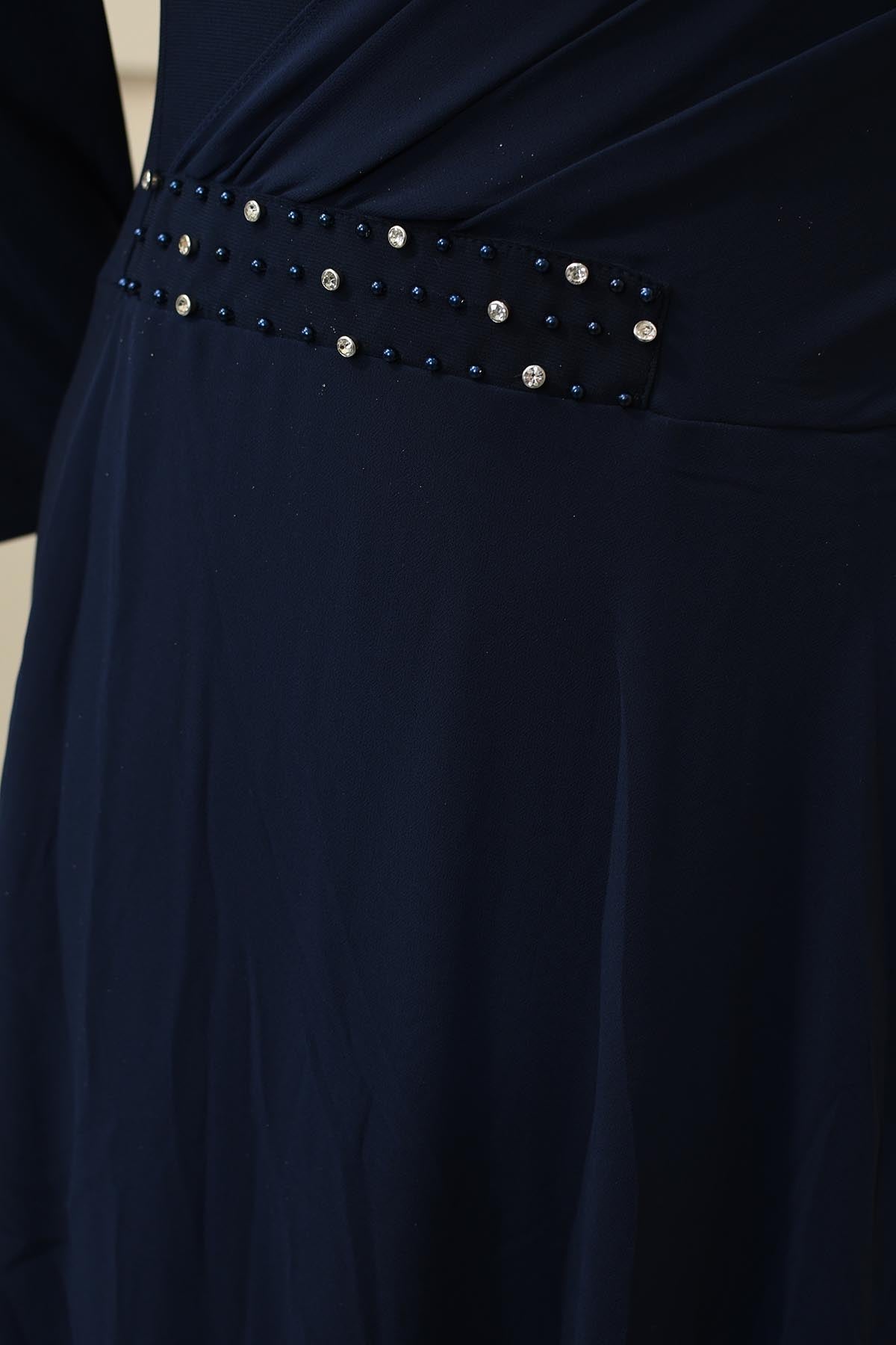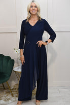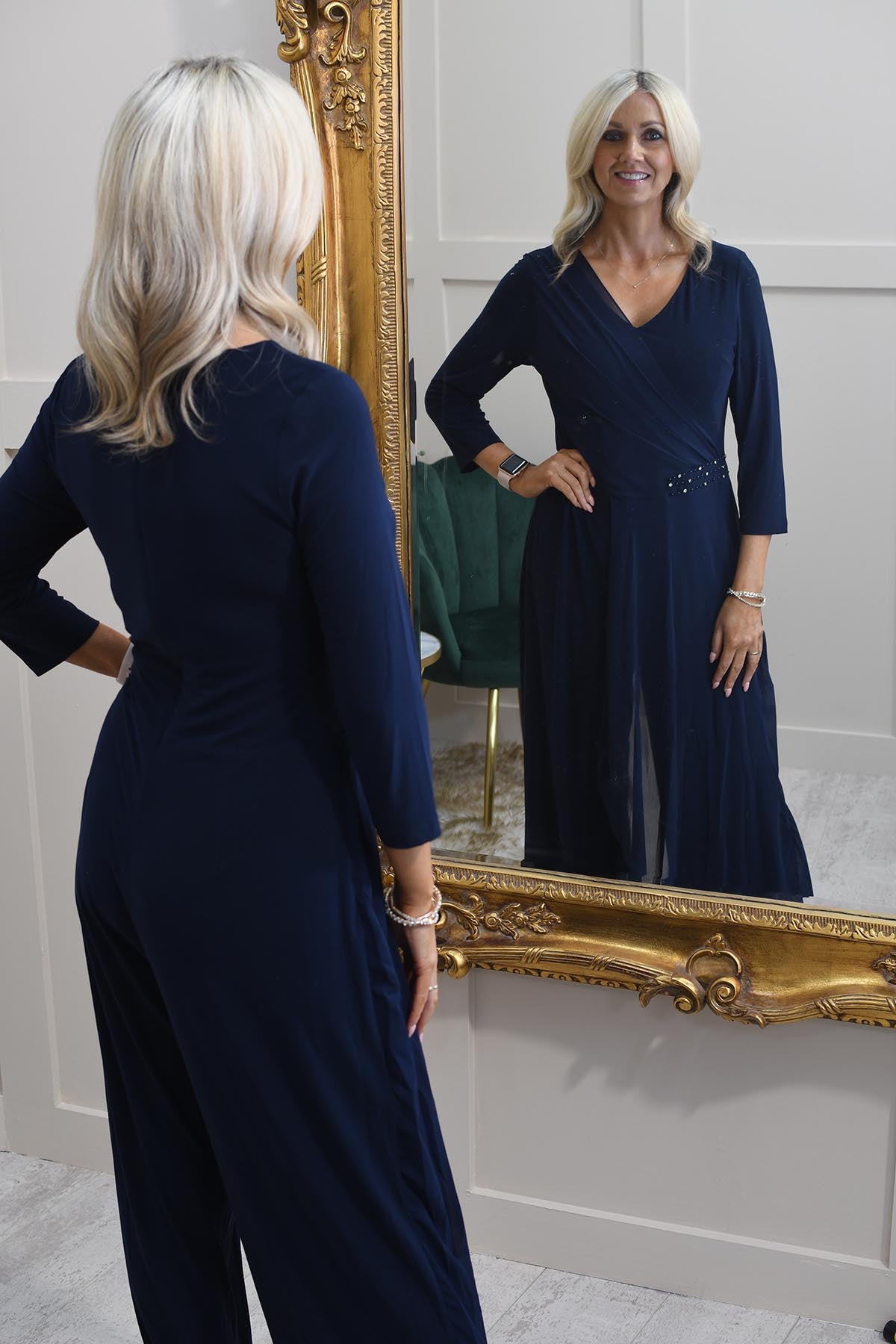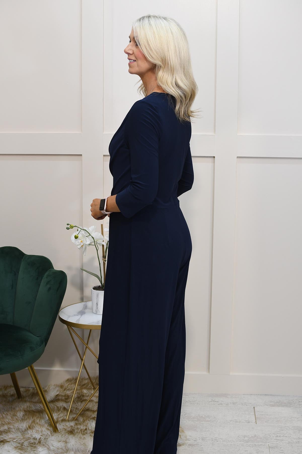 Lizabella – Marineblauer Jumpsuit mit Drapierung und Strass-Detail-L-24AW-5072-12