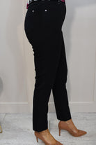 Gehen Sie bequem und stilvoll aus in dieser eleganten Jeans von Marble. Die High Rise Stretch Black Jeans schmeichelt Ihrer Figur, hat eine hohe Taille und schmal geschnittene Beine. Diese elegante schwarze Jeans hat fünf Taschen, einen Reißverschluss und einen Knopfverschluss und sieht mit schwarzen Absätzen umwerfend aus.
