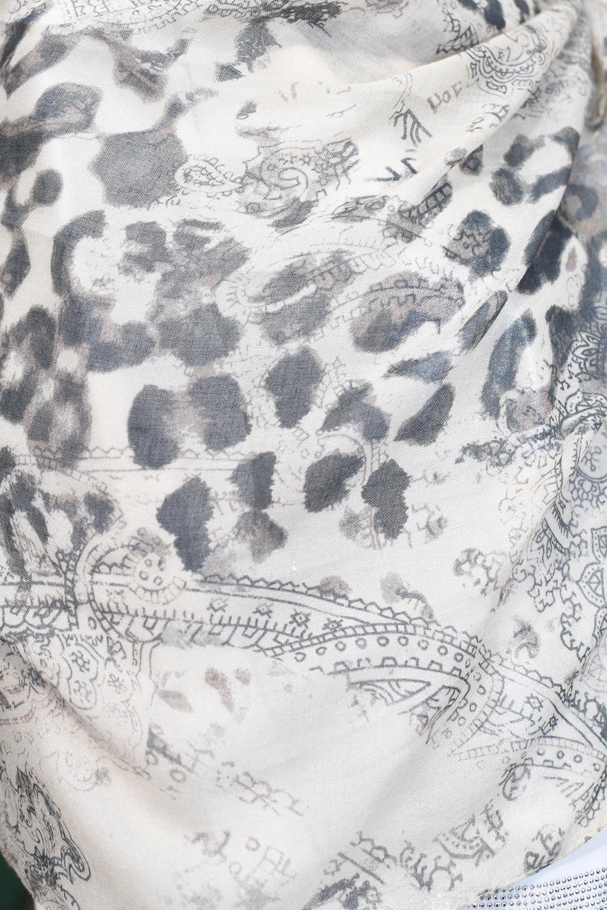 Monari Cremefarbener Schal mit Leoparden- und Paisleymuster – 808196