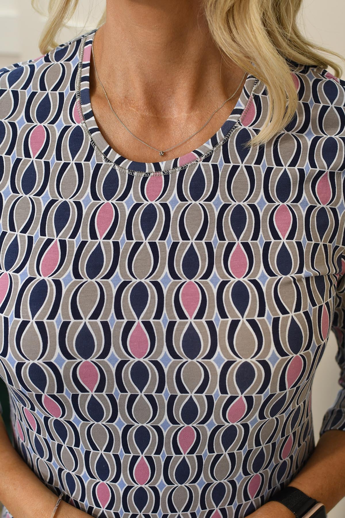Olsen- Long Sleeve Pattern Top - Pink, Taupe & Navy- 11105198