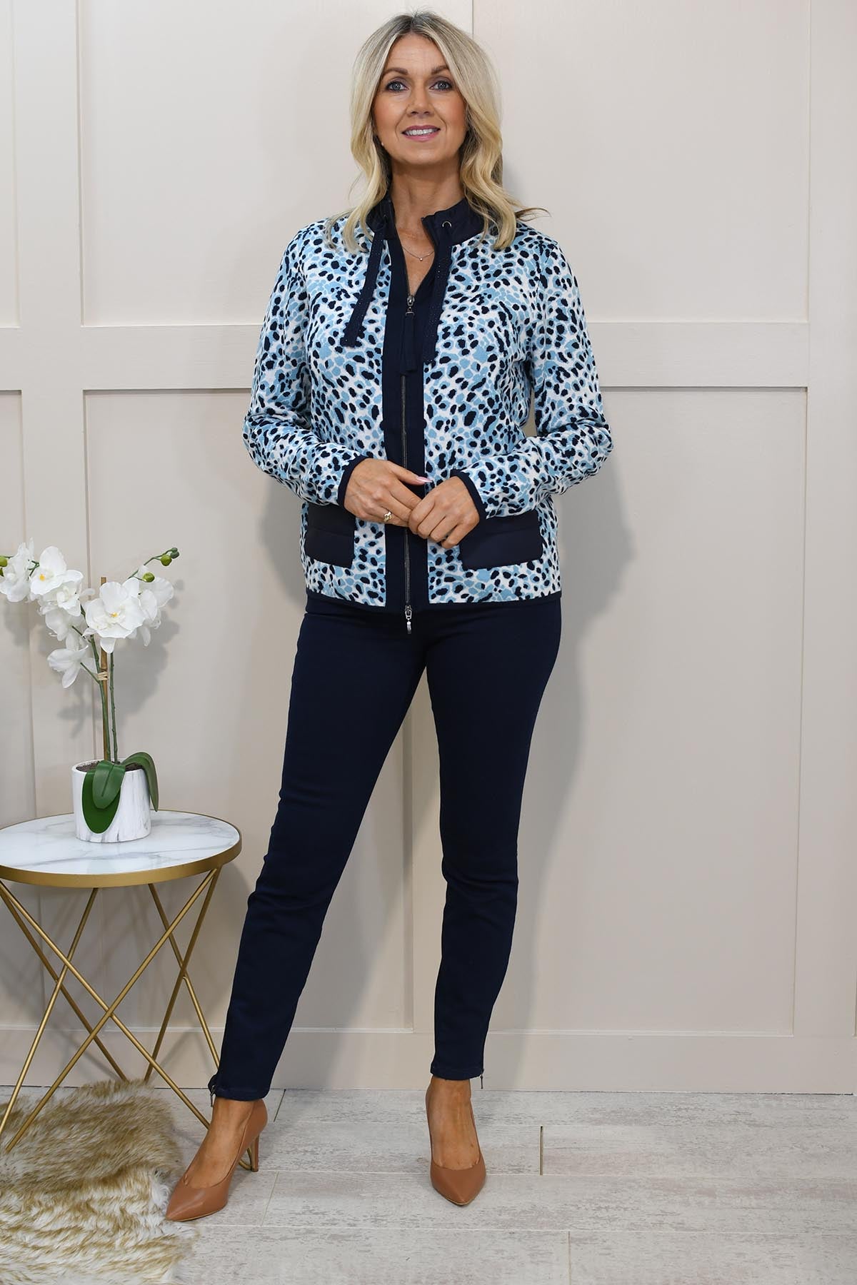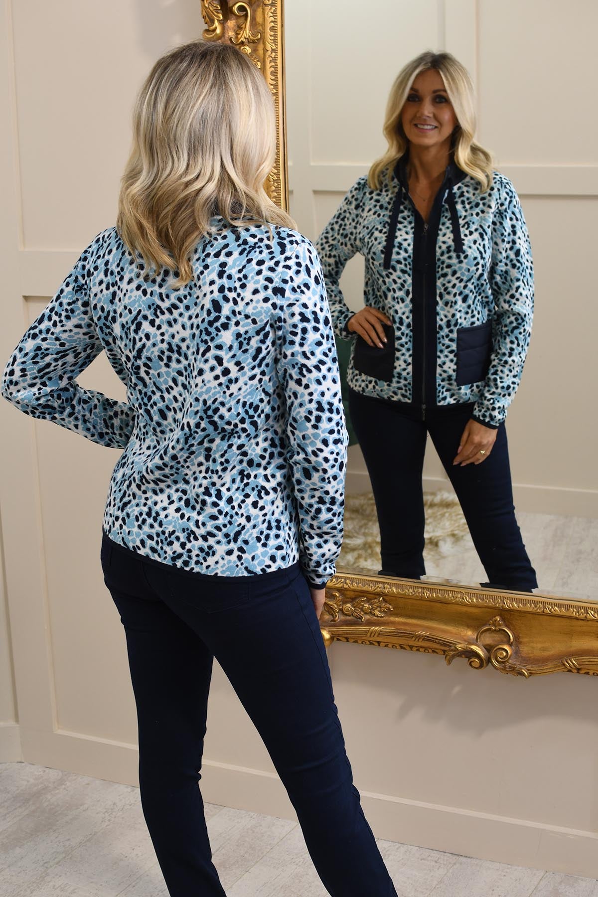 Olsen-Mixed-Media Jacket With Drawstring- Navy & Turquoise- 11004624