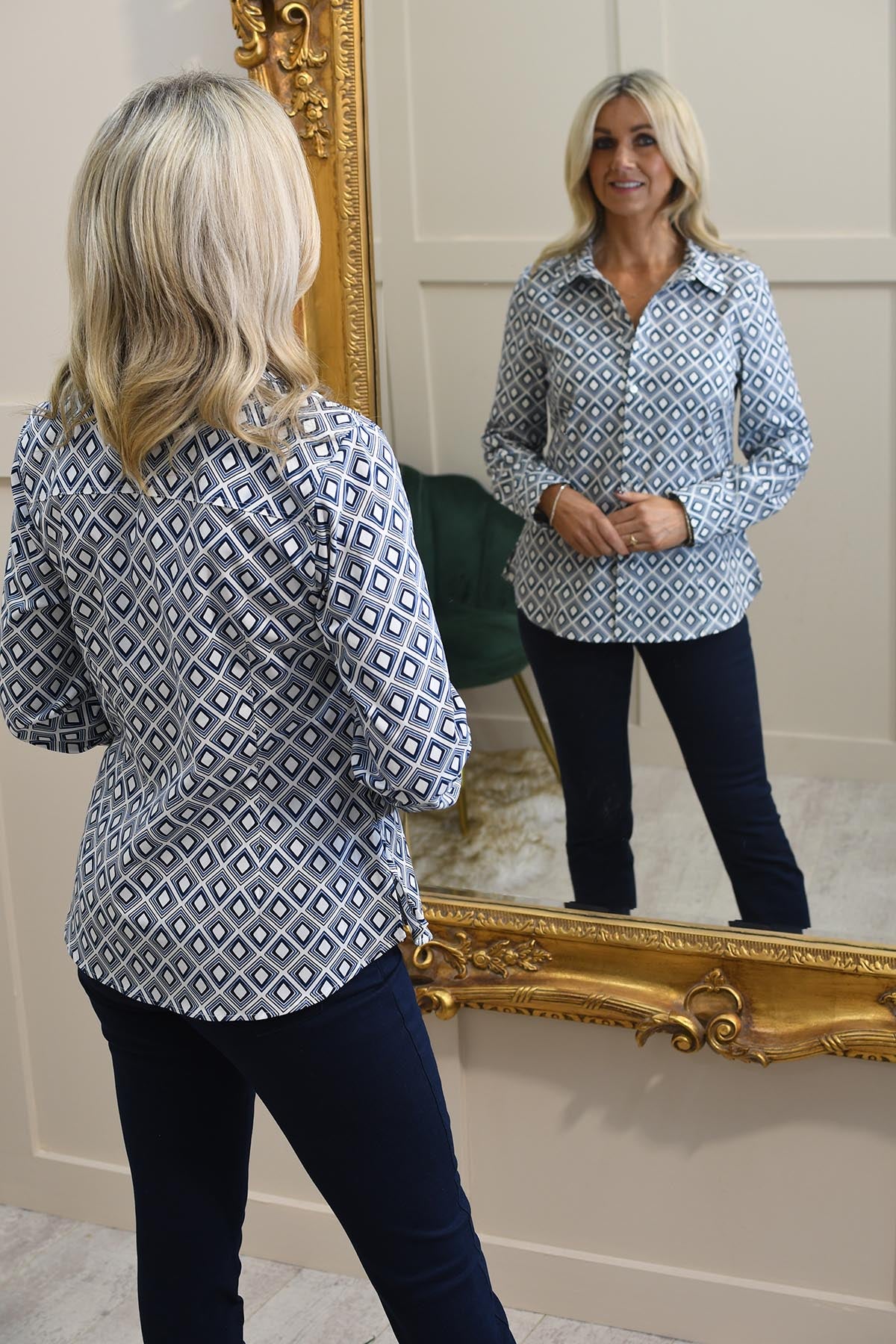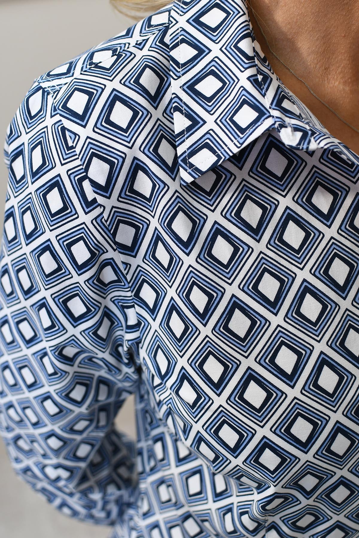 Das Olsen-Hemd mit Rautenmuster in Marineblau und Beige ist die perfekte, leichte Ergänzung für Ihre Sommergarderobe. Sein eleganter Rautendruck in klassischem Marineblau und Beige strahlt mühelose Eleganz aus und macht es ideal für legere und halbformelle Anlässe. Dieses Hemd aus atmungsaktivem Stoff sorgt an warmen, sonnigen Tagen für Komfort und behält gleichzeitig einen eleganten Look. Kombinieren Sie es mit Hosen oder Röcken für einen vielseitigen, zeitlosen Stil. Ein Muss für alle, die ein schickes und praktisches Sommer-Basic suchen, das zeitloses Design mit saisonalem Komfort verbindet.