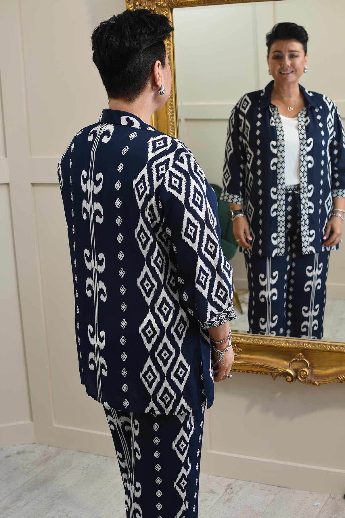 Upgrade your warm-weather wardrobe with the Pomodoro Navy Aztec Stripe Print Shirt a perfect blend of casual elegance and effortless comfort. Crafted from 100% lightweight viscose, this breathable shirt is ideal for holiday styling and everyday wear. The striking Aztec stripe print in rich navy hues adds a bold yet timeless touch, while the relaxed fit, button-down front, and classic collar ensure a polished yet laid-back look. Whether paired with linen trousers for a chic resort outfit or styled with denim for a casual day out, this versatile piece is a must-have for stylish summer dressing.