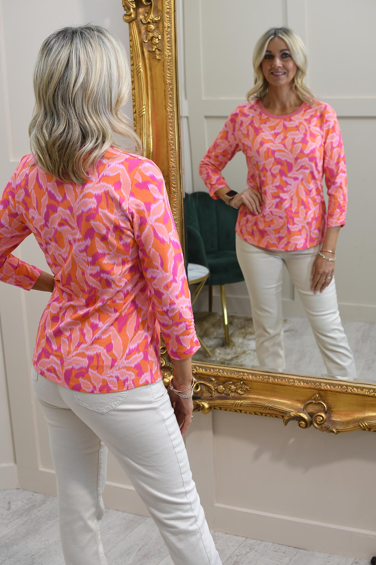 Rabe Orange, Fuchsia & Peach Abstract Print Top -54-214352