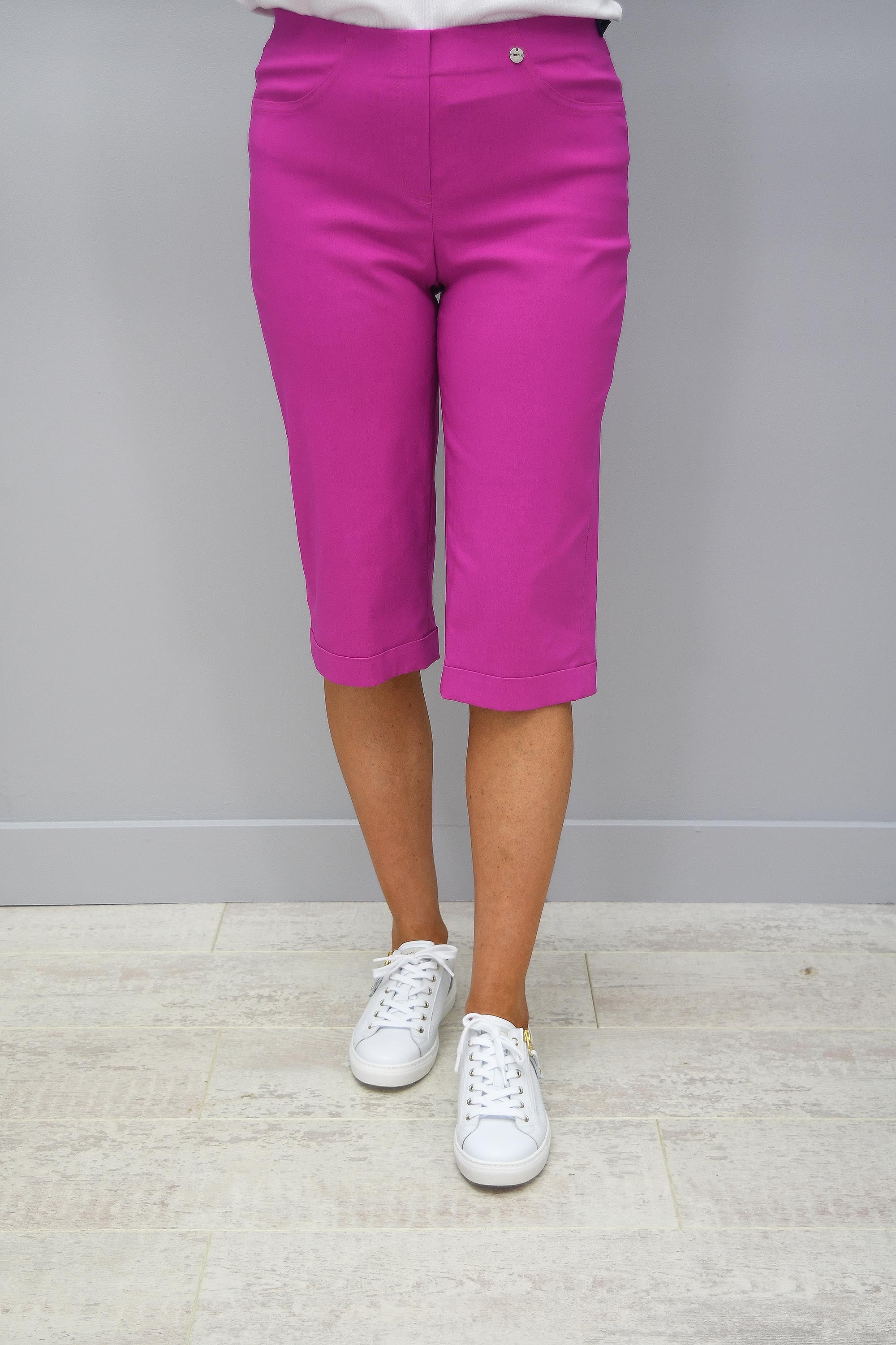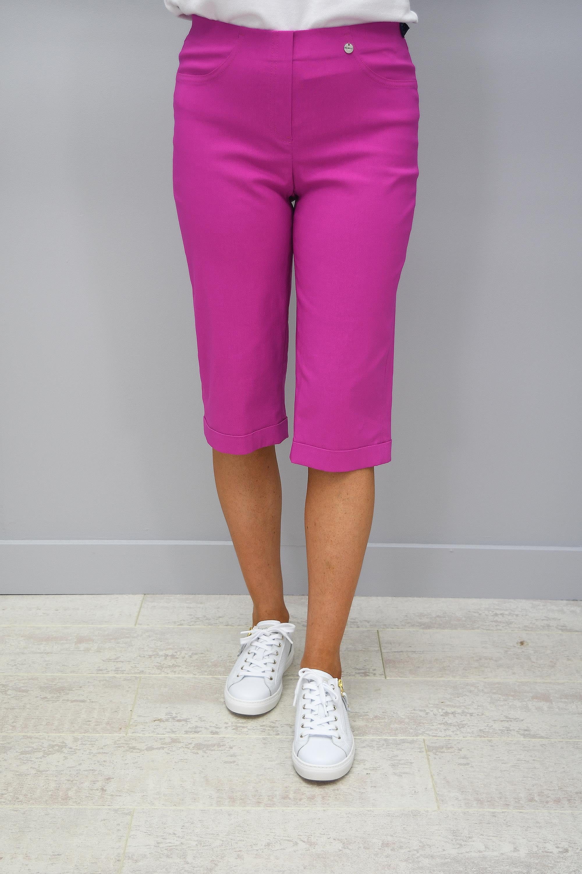 Gehen Sie diesen Sommer mit Stil aus in unseren Robell Bella Air Force Bubblegum Pink Shorts. Diese Shorts sind in dieser Saison ein unverzichtbares Teil Ihrer Garderobe... Sie sollten sie sich nicht entgehen lassen! Die höhere Taille ist angenehm zu tragen und ermöglicht es Ihnen, ein kleines Oberteil hineinzustecken, um Ihre Taille zu betonen. Robell ist der Beste, wenn es um Shorts mit entspannter Passform geht... und diese Shorts beweisen genau das! Die Länge ist perfekt... sie reicht gerade bis zum Knie. Kombinieren Sie sie mit Sandalen oder Ihren Lieblings-Wedges und einem hellen Oberteil... und Sie sind bereit für den Sommer! Wenn Sie in den Urlaub fahren und Shorts möchten, die Sie jeden Tag tragen können... dann erfüllen diese alle Anforderungen. Perfekt, um die Sonne mit Stil und Komfort zu genießen.
