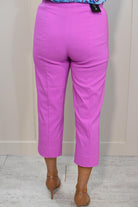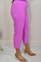 Die Hose ist aus hochwertigem Stoff gefertigt und hat einen herrlichen Orchideenton, der Eleganz und Charme ausstrahlt. Das weiche und dehnbare Material sorgt für eine schmeichelhafte und bequeme Passform und bietet den ganzen Tag Bewegungsfreiheit.
