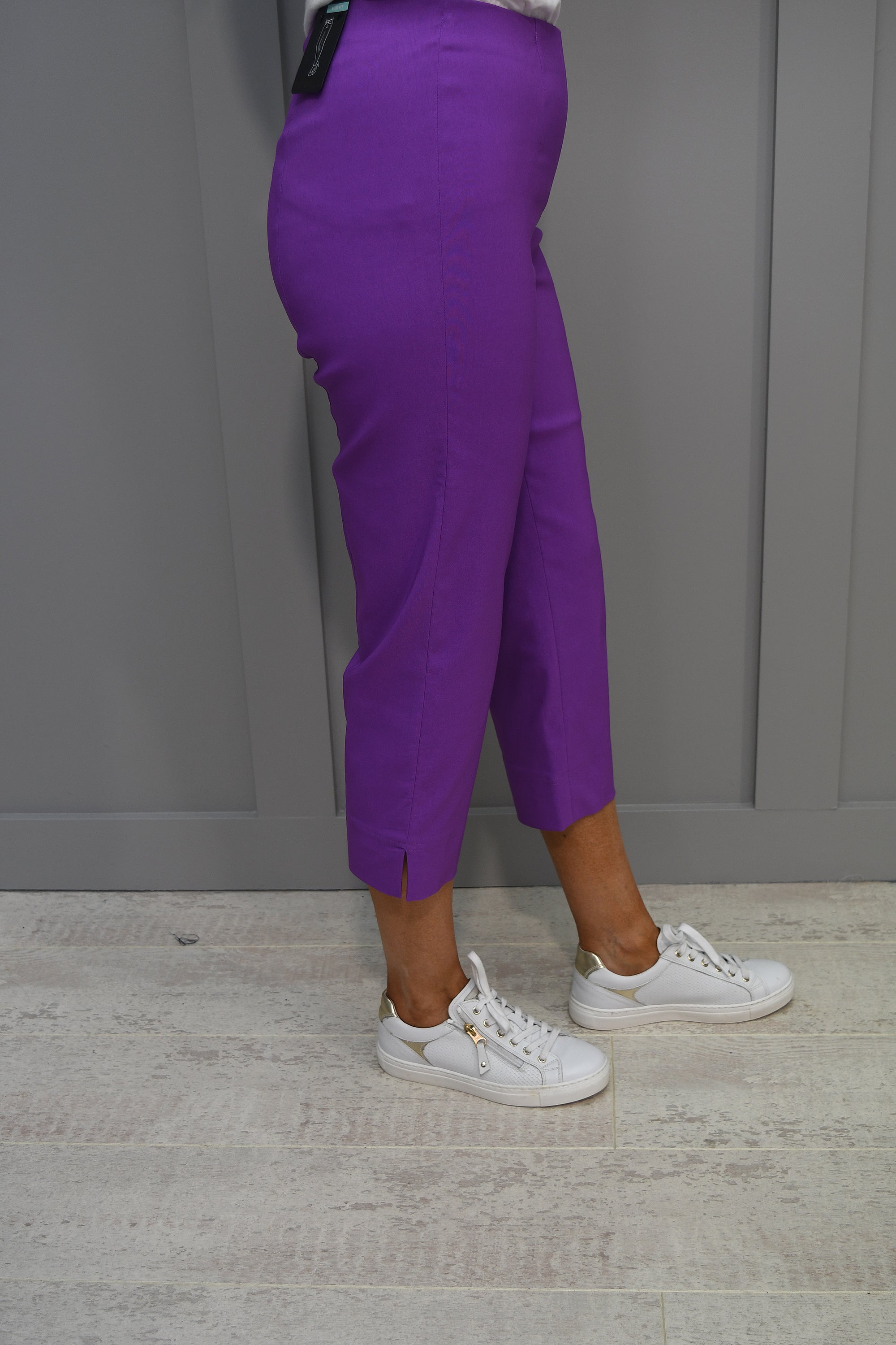 Robell hat es wieder geschafft. Die atemberaubende, lebendige und bequeme Robell Marie Purple Cropped Trousers bietet alles. Mit ihrem bequemen Überziehstil und der verkürzten Länge wird die lebendige Hose Ihr Lieblingsstück sein, das Sie das ganze Jahr über tragen möchten. Das 3/4-lange Bein verlängert und verschlankt Ihr Bein und hilft Ihnen, gut auszusehen und sich gut zu fühlen. Sie ist extrem dehnbar und leicht, perfekt für Frauen, die Luxus wollen und in Sachen Komfort keine Kompromisse eingehen möchten.