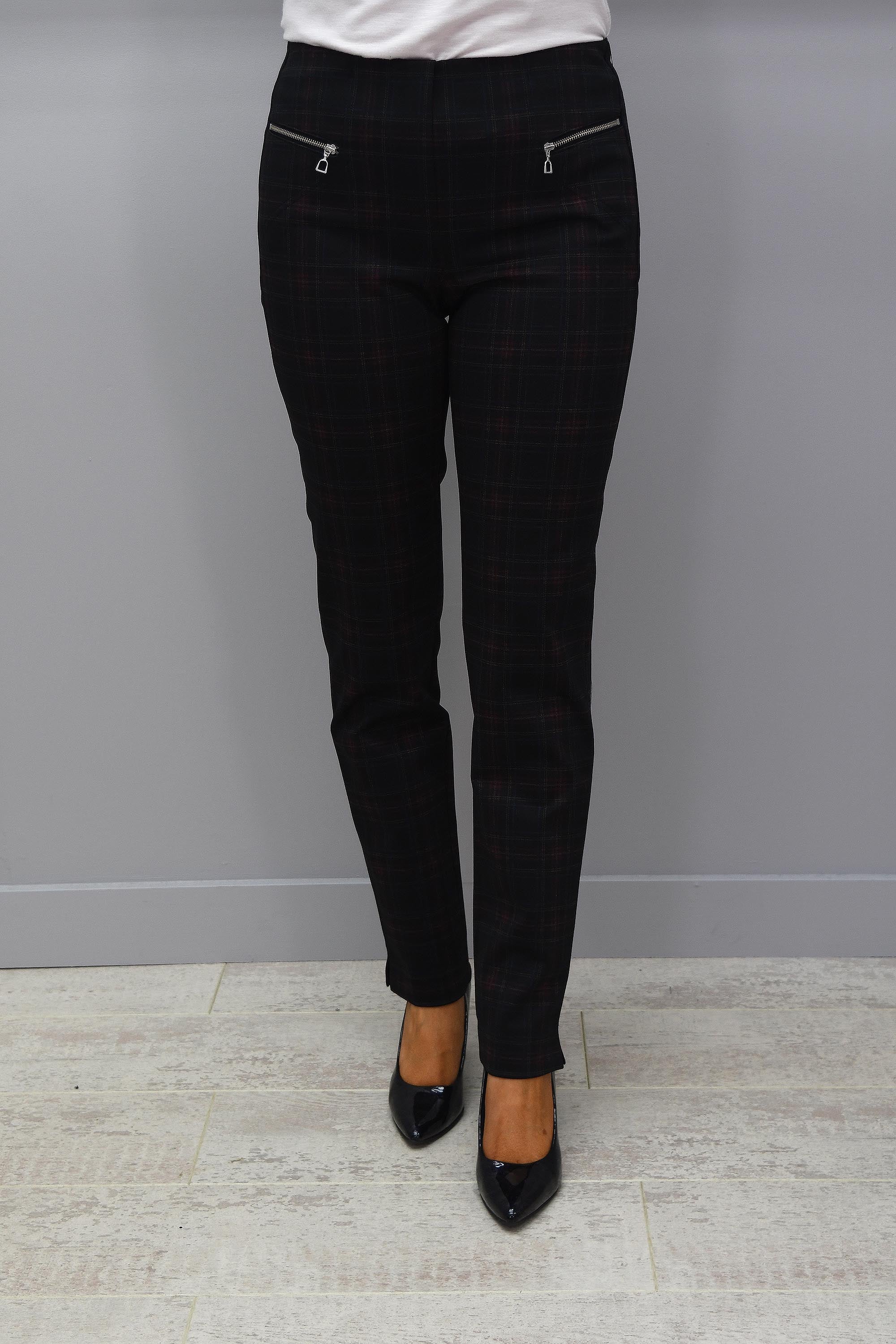 Ihre Herbstgarderobe wäre ohne eine atemberaubende gemusterte Hose einfach nicht komplett! Entscheiden Sie sich für diese schwarze Mimi-Hose mit Schottenmuster von Robell und Sie werden jeden Tag stilvoll ausgehen. Mit einem dunklen Schottenmuster und zwei silbernen Reißverschlusstaschen auf der Vorderseite ist diese Hose vielseitig und modisch. Unsere neue Robell-Kollektion präsentiert uns diese fabelhafte schwarze Mimi-Hose mit Schottenmuster von Robell. Schottenmuster ist derzeit voll im Trend, also stellen Sie sicher, dass Ihre Hose mit dieser wunderschönen Auswahl von Mimi dem Stil folgt. Das subtile, aber effektive schwarz-rote Muster schafft ein fertiges Produkt, das sowohl praktisch als auch mühelos stilvoll ist. Mit einem äußerst bequemen Überziehdesign und einem flachen elastischen Bund betont unsere schwarze Mimi-Hose mit Schottenmuster von Robell all Ihre besten Bereiche. Mit einem durchgehenden schmalen Bein hat diese Hose genau die perfekte Länge, um Ihr Bein zu verlängern. Diese schwarze Mimi-Hose mit Schottenmuster von Robell ist mit einem kleinen Hauch von Stretch gefertigt, wodurch sie bequem zu tragen ist, ohne Kompromisse beim Stil einzugehen. Die Reißverschlusstaschen auf der Vorderseite sind trendig und voll funktionsfähig. Tragen Sie unsere wunderschöne schwarze Robell Mimi-Hose mit Schottenkaro im Büro oder bei einem Abend in der Stadt mit Freunden. So stilvoll und einfach zu tragen, dass Sie sie gar nicht mehr ausziehen möchten!