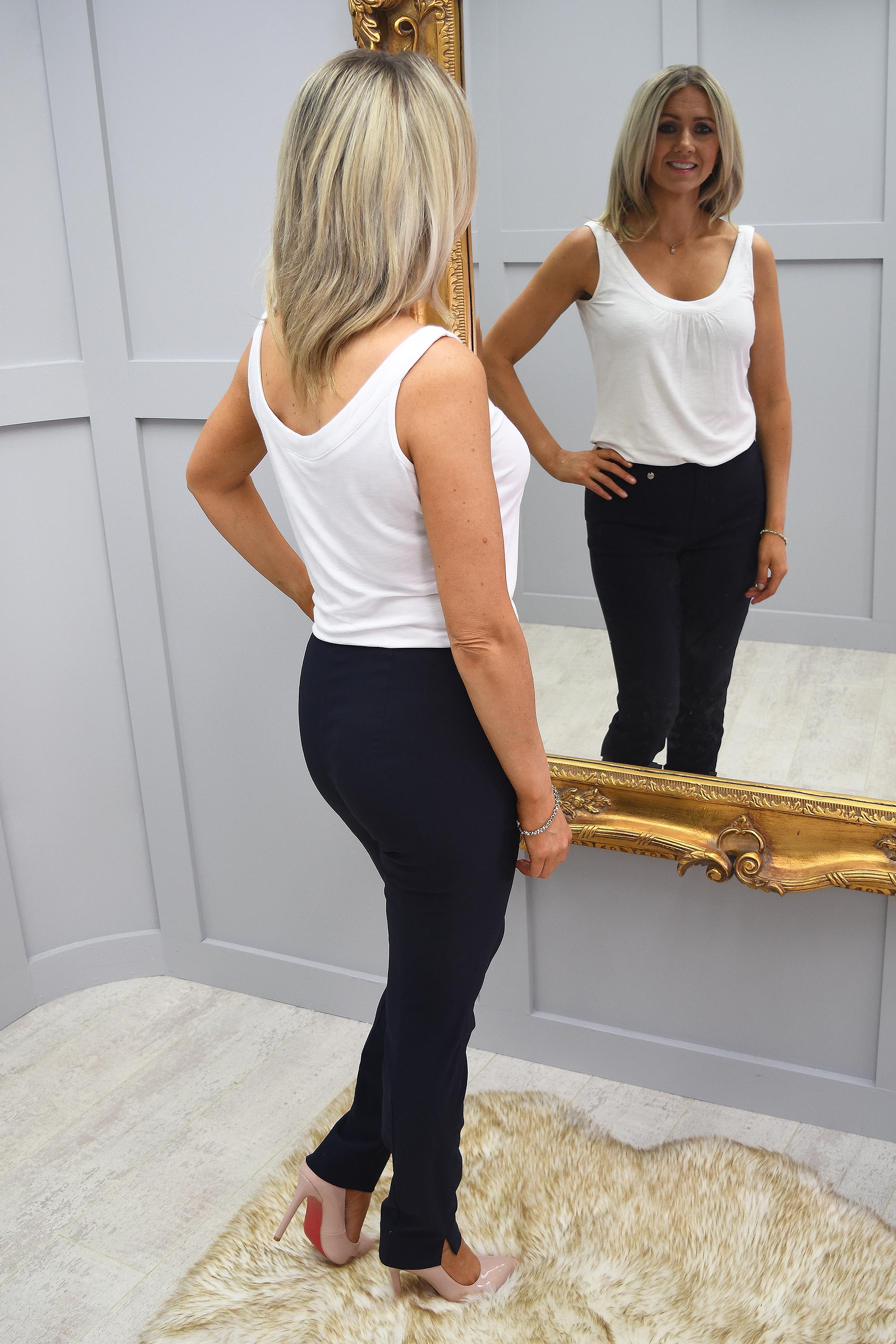 Die perfekte Hose! Unsere marineblaue lange Hose in Super Slim Fit von Robell Rose bringt Komfort und Stil auf ein neues Niveau. Mit einem unglaublich bequemen Überziehdesign mit flachem elastischem Bund und einer raffinierten Naht ermöglichen sie Ihnen, Ihre perfekte Form zu erreichen und Ihre Taille zu betonen. Mit der schönen langen Beinlänge und der superschmalen Passform am Bein sorgen diese Hosen von Robell Rose für schlanker wirkende Beine und eine fantastische Rundumform. Die superschmal geschnittene Verarbeitung liegt in dieser Saison voll im Trend und macht diese Hose zu einer perfekten Ergänzung für die Garderobe jeder Frau! Tragen Sie sie den ganzen Tag bequem und sehen Sie dabei immer noch großartig aus! Kombinieren Sie sie mit einem eleganten Oberteil und Ihren Lieblings-High-Heels für einen umwerfenden Abendlook. Sehen Sie in dieser Saison in unserer marineblauen langen Hose in Super Slim Fit von Robell Rose großartig aus und fühlen Sie sich großartig.