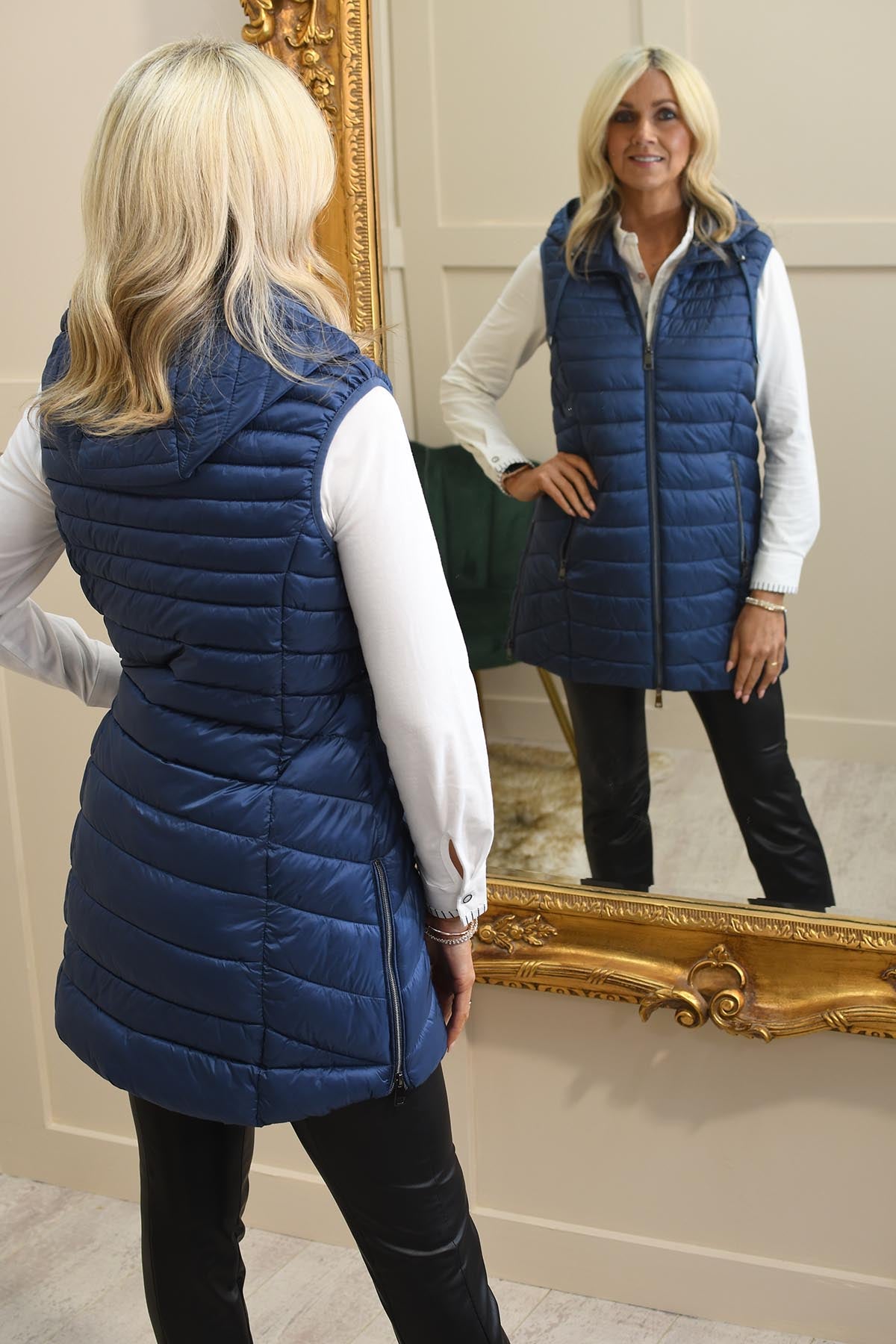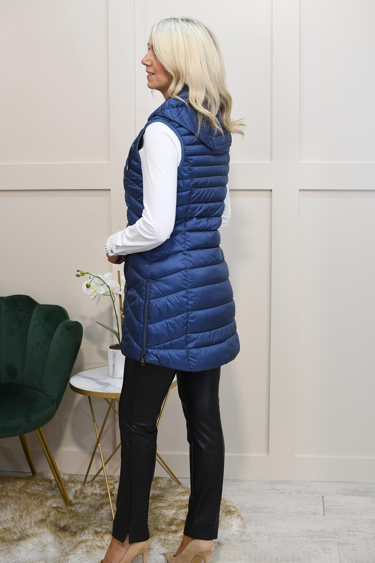 Confectionné dans une teinte bleu denim, ce gilet apporte une touche de couleur vive à n'importe quelle tenue. La teinte luxueuse est non seulement tendance mais aussi polyvalente, s'associant sans effort aux tons neutres et aux couleurs plus vives de votre garde-robe. Que vous ajoutiez une couche sur un pull pour une matinée fraîche ou que vous ayez besoin d'une couche extérieure élégante pour une soirée fraîche, ce gilet est fait pour vous.