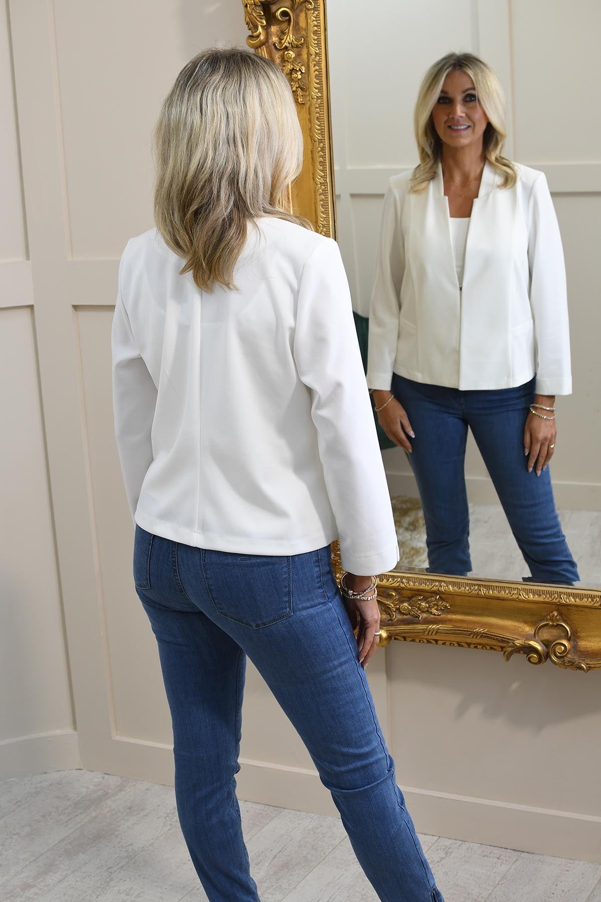 The YEW Off-White Jacket with Clasp is a statement piece that combines structure with sophistication. Crafted in a classic white hue, this jacket features a sleek front clasp closure that adds a refined touch to its tailored silhouette. Designed for both polish and comfort, it offers a flattering fit that enhances any outfit, whether layered over dresses, blouses, or casual tees. Perfect for workdays, evenings out, or elevating your everyday look, the 4268 jacket brings versatile colour and timeless style to your wardrobe.