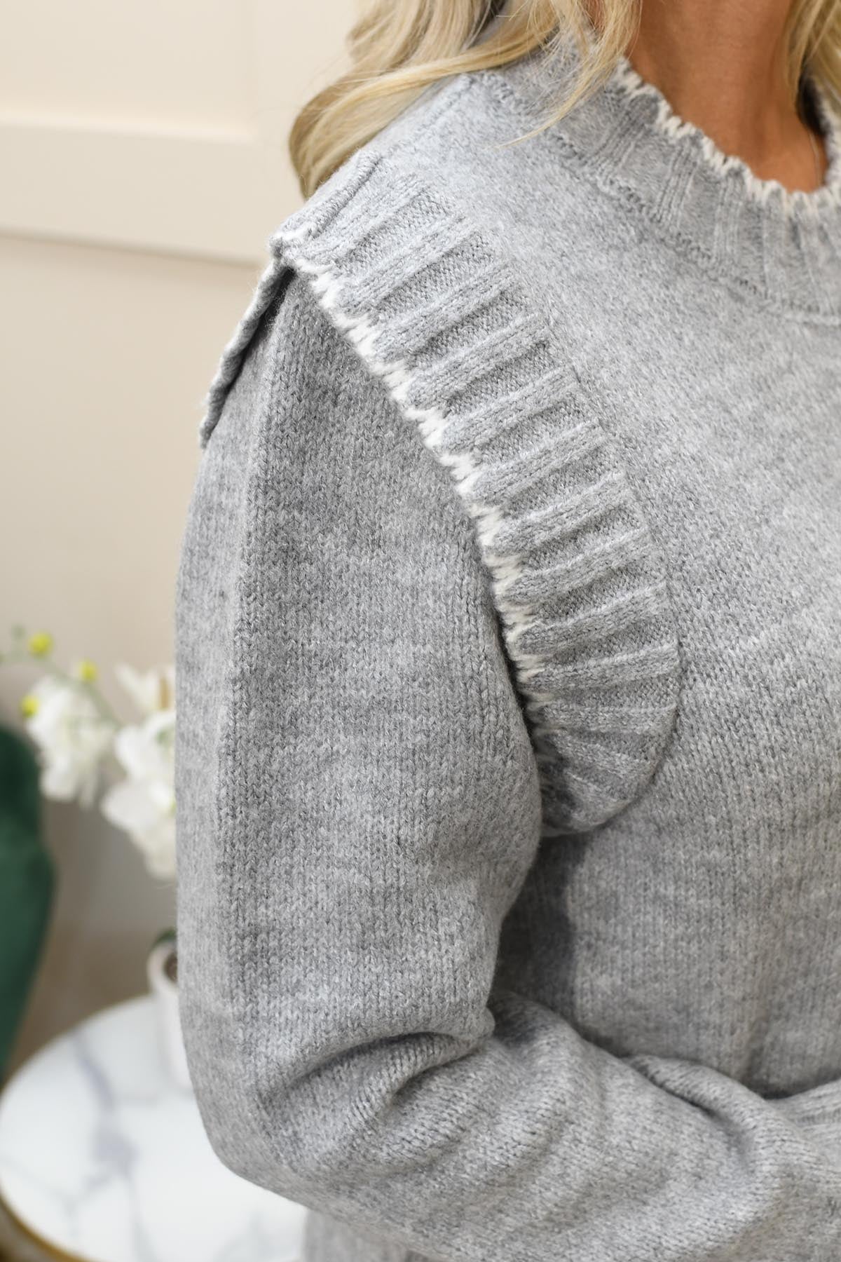 Darling Frill Shoulder Contrast Jumper- Light Grey DA25-701