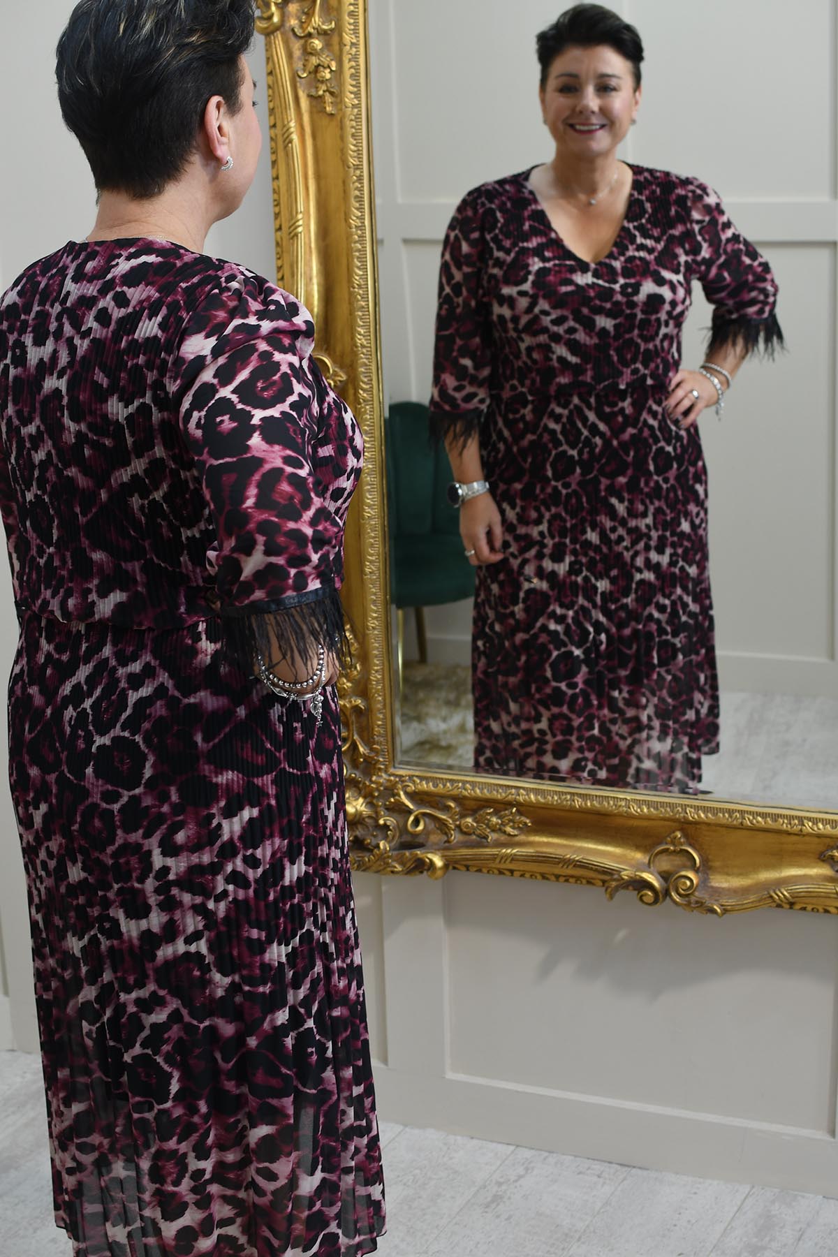 The Kyla Leopard Print Dress with Feather Sleeve Detail in Wine is a statement piece that perfectly blends sophistication with bold style. Crafted from a soft, stretchy blend of 95% viscose and 5% elastane, it offers a flattering fit that moves comfortably with you. The classic leopard print brings timeless appeal, while the feather-trimmed sleeves add a touch of playful glamour and texture. Ideal for evening events, parties, or special occasions, this dress combines comfort with eye-catching elegance. Pair it with heels and minimal accessories for a confident, fashion-forward look that’s sure to turn heads.