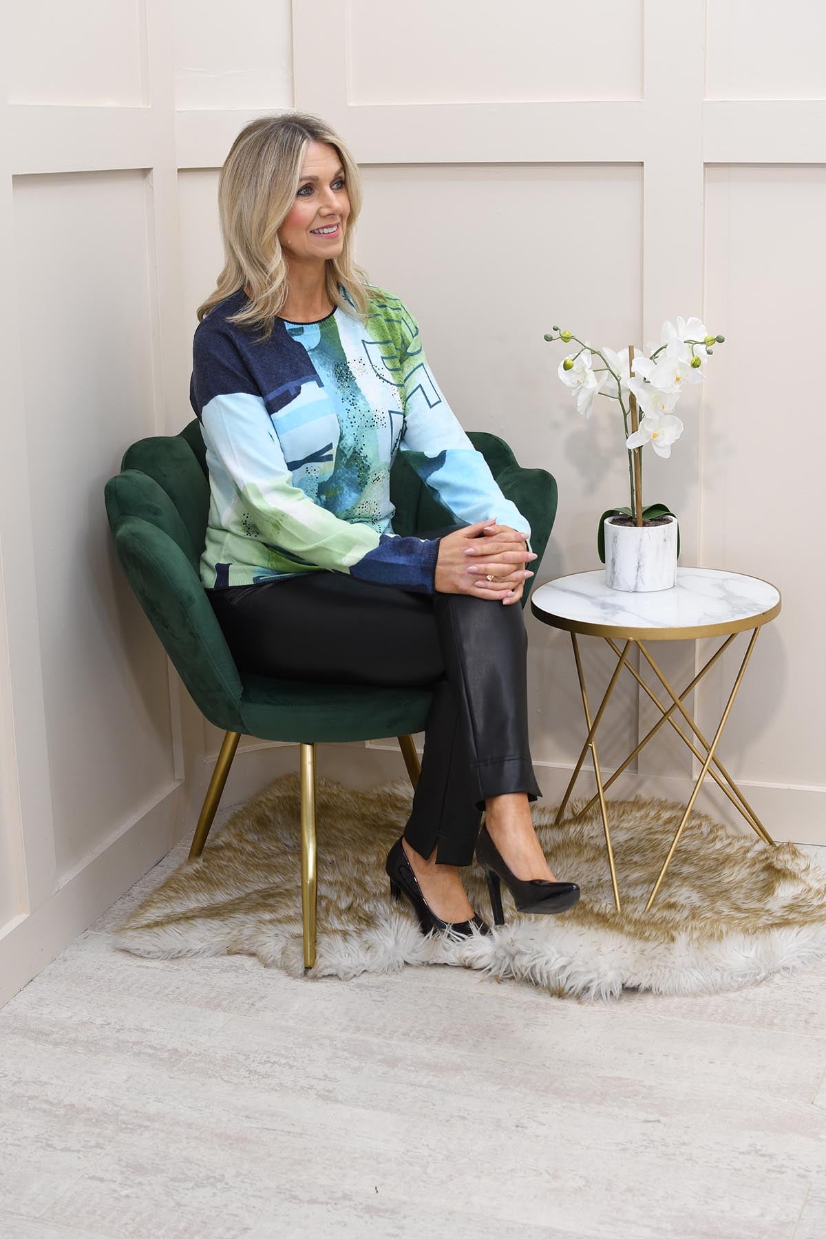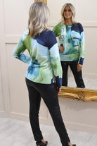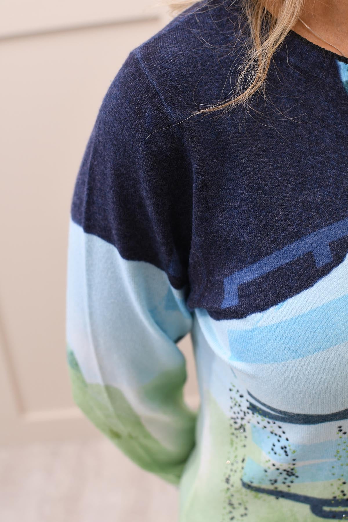 Rabe 'Explore' Soft Night Jumper With Diamante Detail- Green, Turquoise & Navy 55-223610