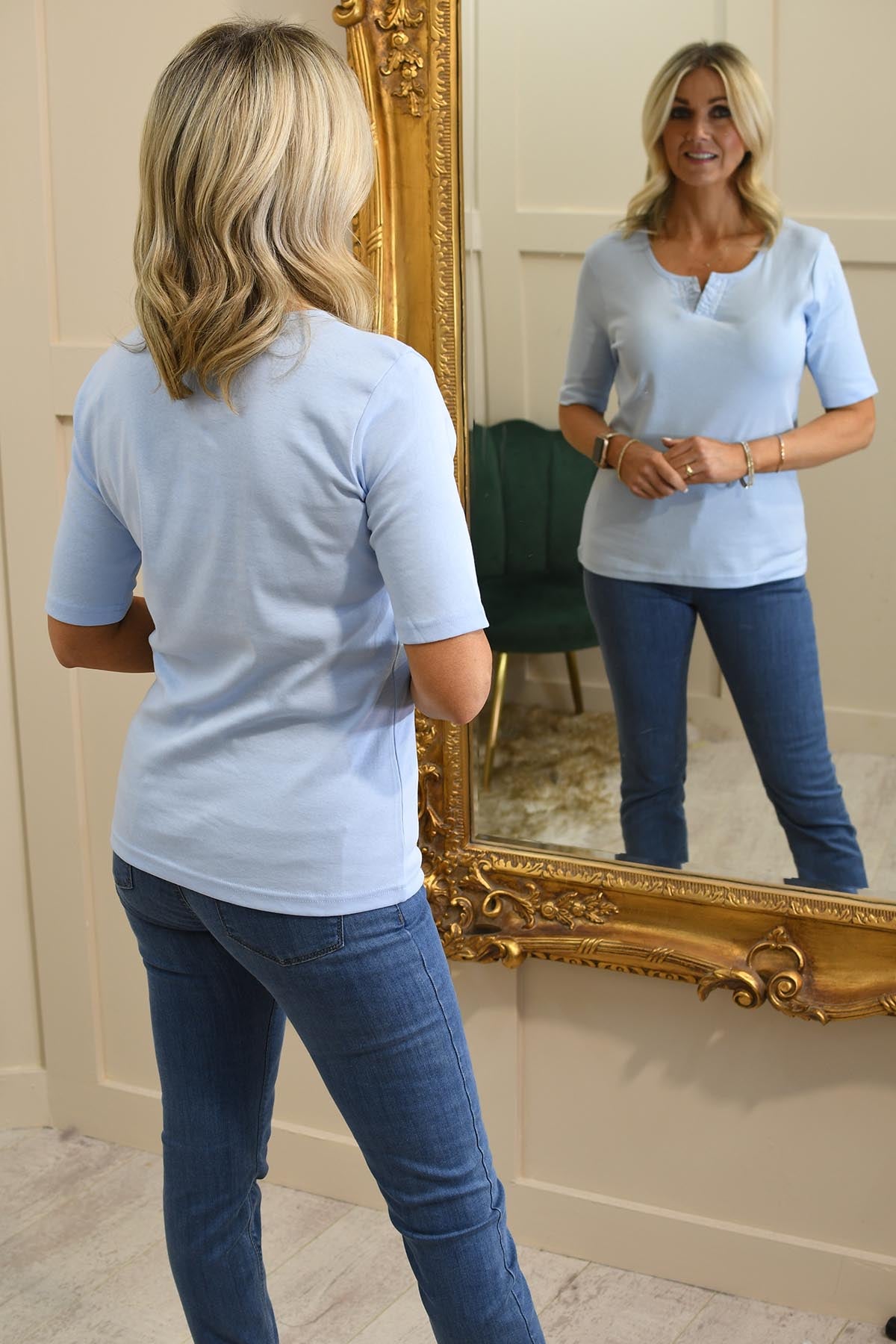 Sunday Baby Blue Top With Diamante Ruffle V Neck Detail-6574 6000 77