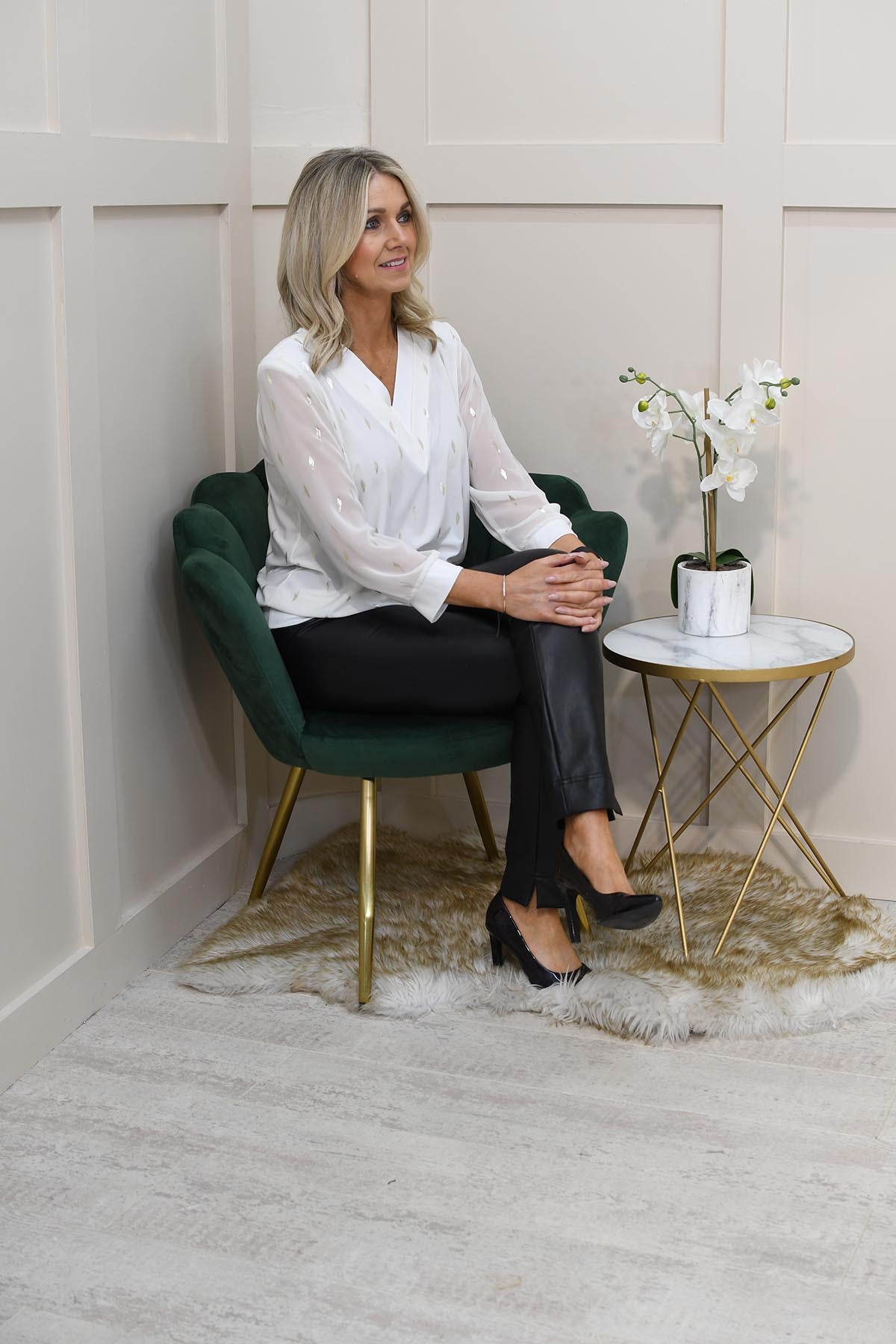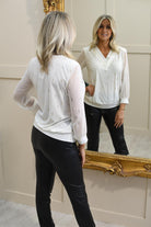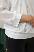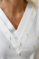 YEW V-Neck Top With Pleather Cuff & Gold Foil Detail- Cream 4278-2 Dani