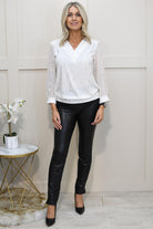 The YEW White V-Neck Top With Pleather Cuff Detail is a sleek and contemporary wardrobe essential that combines timeless elegance with a modern edge. This top features a classic V-neckline that flatters the silhouette, while the soft white fabric offers comfort and versatility. The standout feature is the chic pleather cuff detail on the sleeves, adding a touch of sophistication and a subtle, edgy vibe to the design. Perfect for both casual and formal occasions, this top effortlessly transitions from day to night, making it a must-have piece for those seeking a blend of style and comfort.