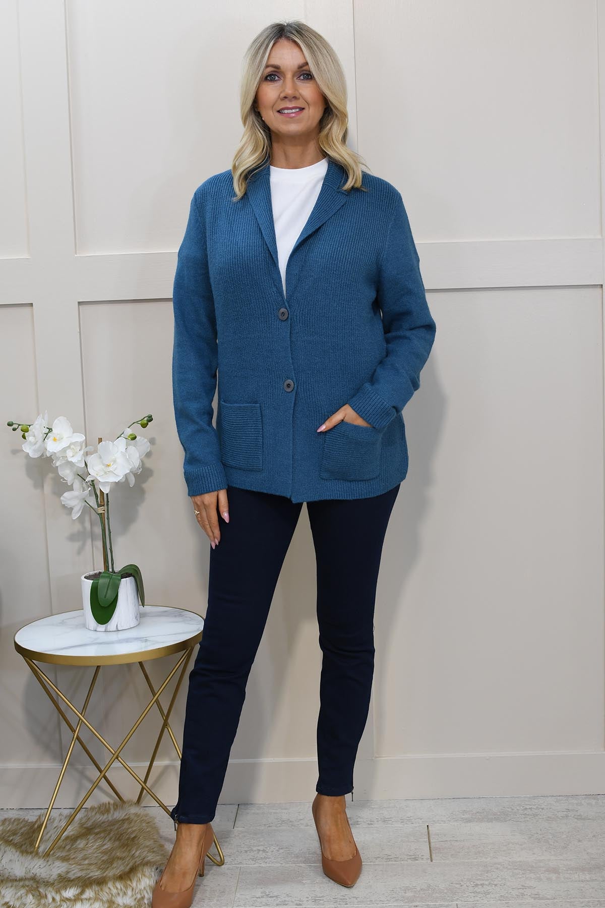 Olsen-Blazer-style Cardigan-Midnight Teal- 11000606