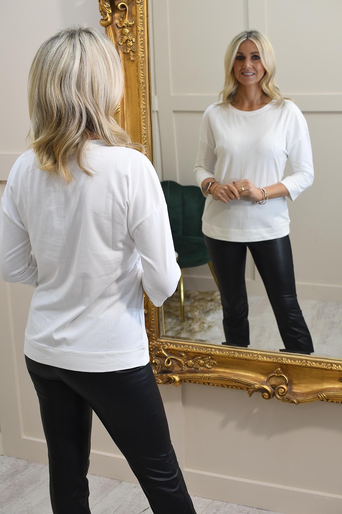 Le haut blanc à manches 3/4 Olsen offre un look chic et confortable pour les sorties décontractées. Sa douce couleur blanche et ses manches 3/4 le rendent parfait pour les temps de transition. Fabriqué à partir d'un tissu léger, il assure respirabilité et confort tout au long de la journée. Son design polyvalent se marie sans effort avec un jean, une jupe ou un pantalon, ce qui en fait un incontournable pour toute garde-robe. Idéal pour celles qui recherchent un haut simple mais élégant qui peut être habillé ou décontracté. Parfait pour les journées décontractées, c'est une pièce intemporelle pour une élégance quotidienne sans effort.