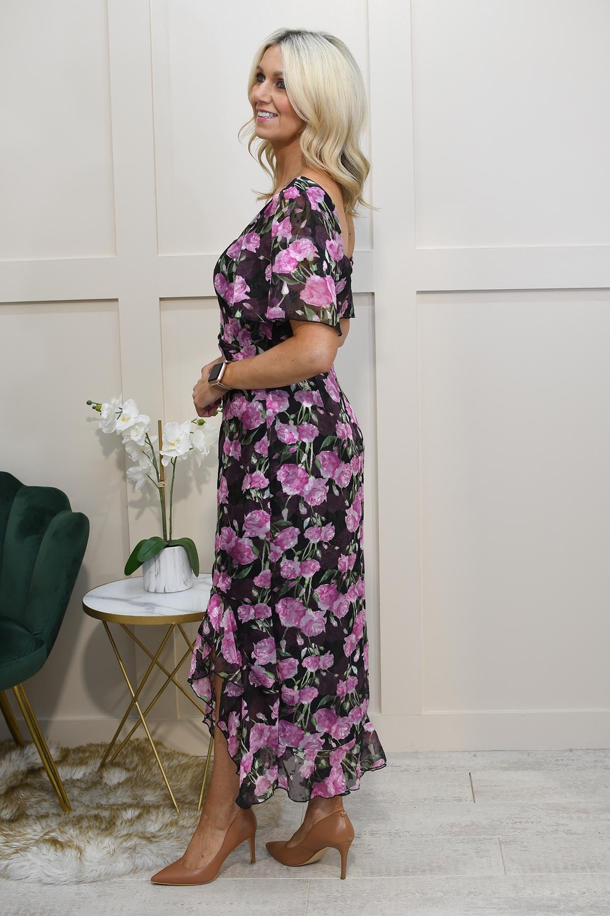 Entrez dans un monde d'élégance et de charme avec la robe Heidi de Girl In Mind. Cette superbe robe midi fleurie violette est conçue pour faire sensation, offrant un mélange parfait de sophistication et de style ludique. Idéale pour de nombreuses occasions, cette robe deviendra votre nouvelle tenue préférée pour tout événement.