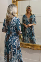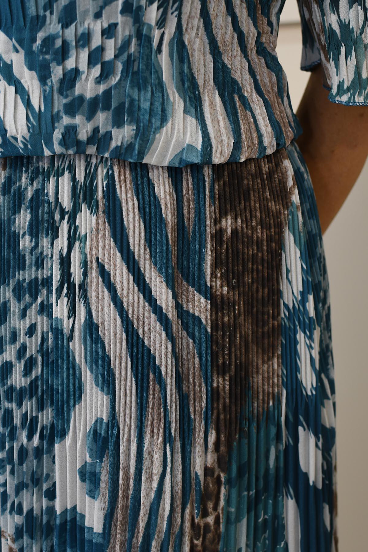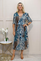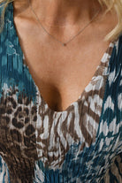 Kyla - Mixed Animal Print Plisse Dress- Teal & Brown- 6747