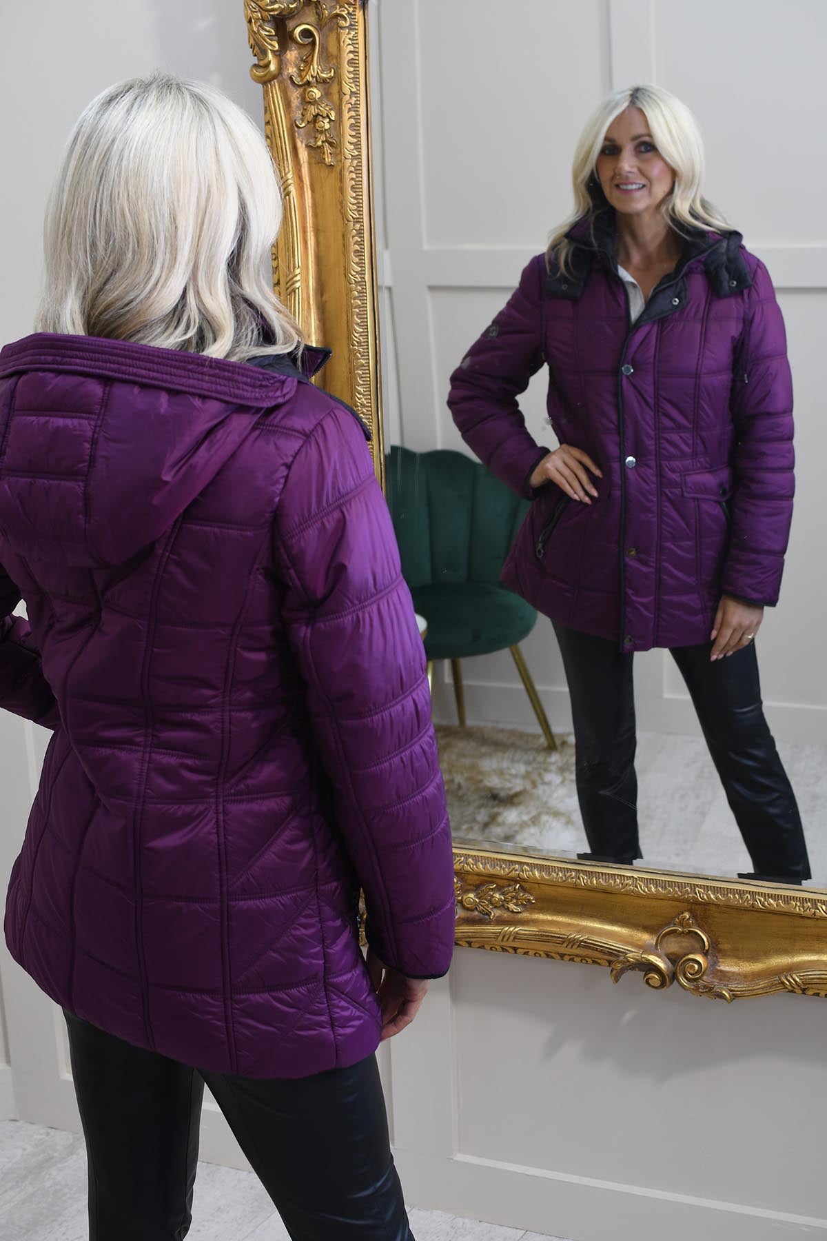 Confectionné dans une riche teinte prune, ce manteau présente une coupe flatteuse et ajustée qui allie à la fois mode et fonctionnalité. La couleur polyvalente est facile à assortir, ce qui en fait un choix parfait pour un usage quotidien, que vous vous rendiez au travail, fassiez des courses ou profitiez d'une journée décontractée.