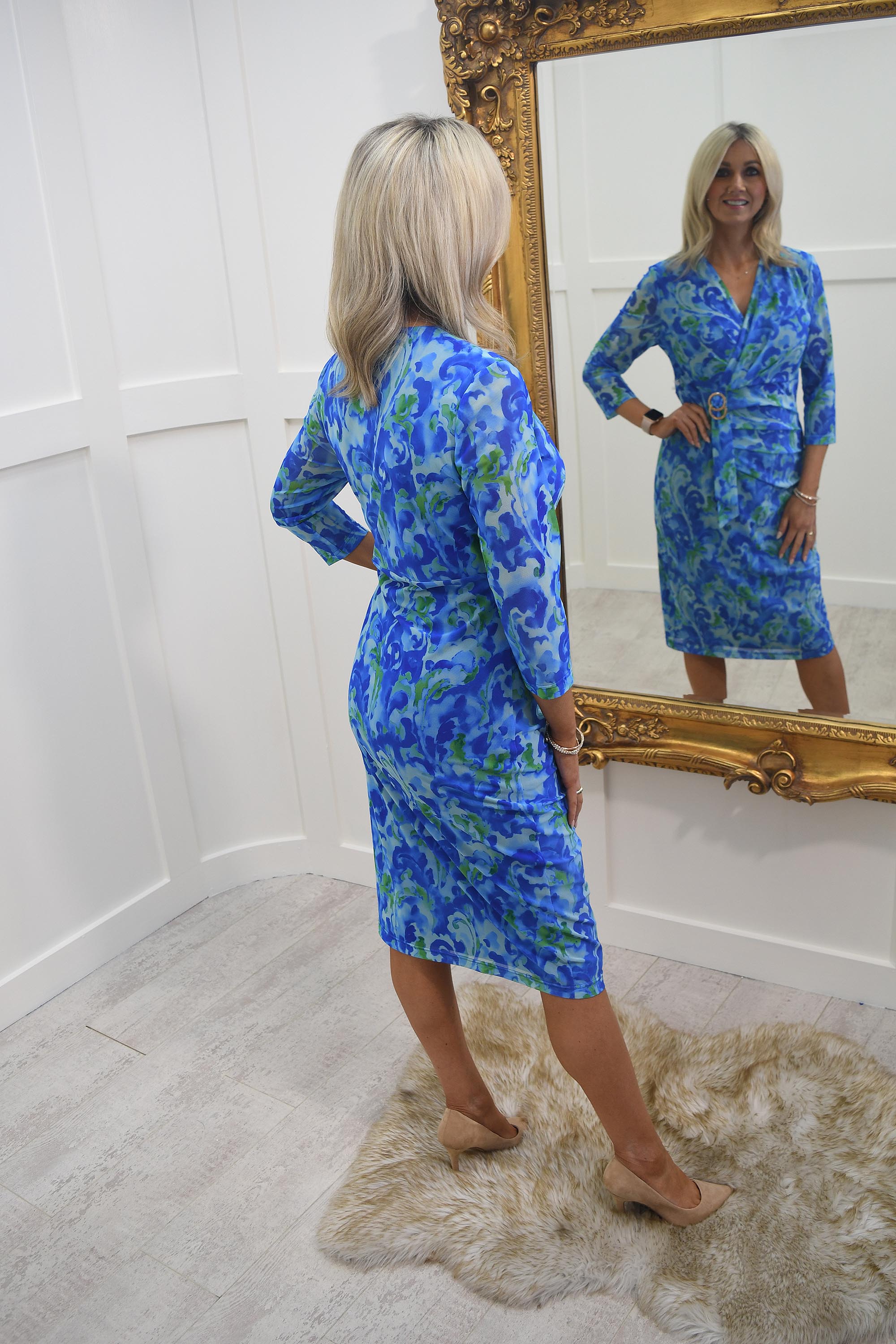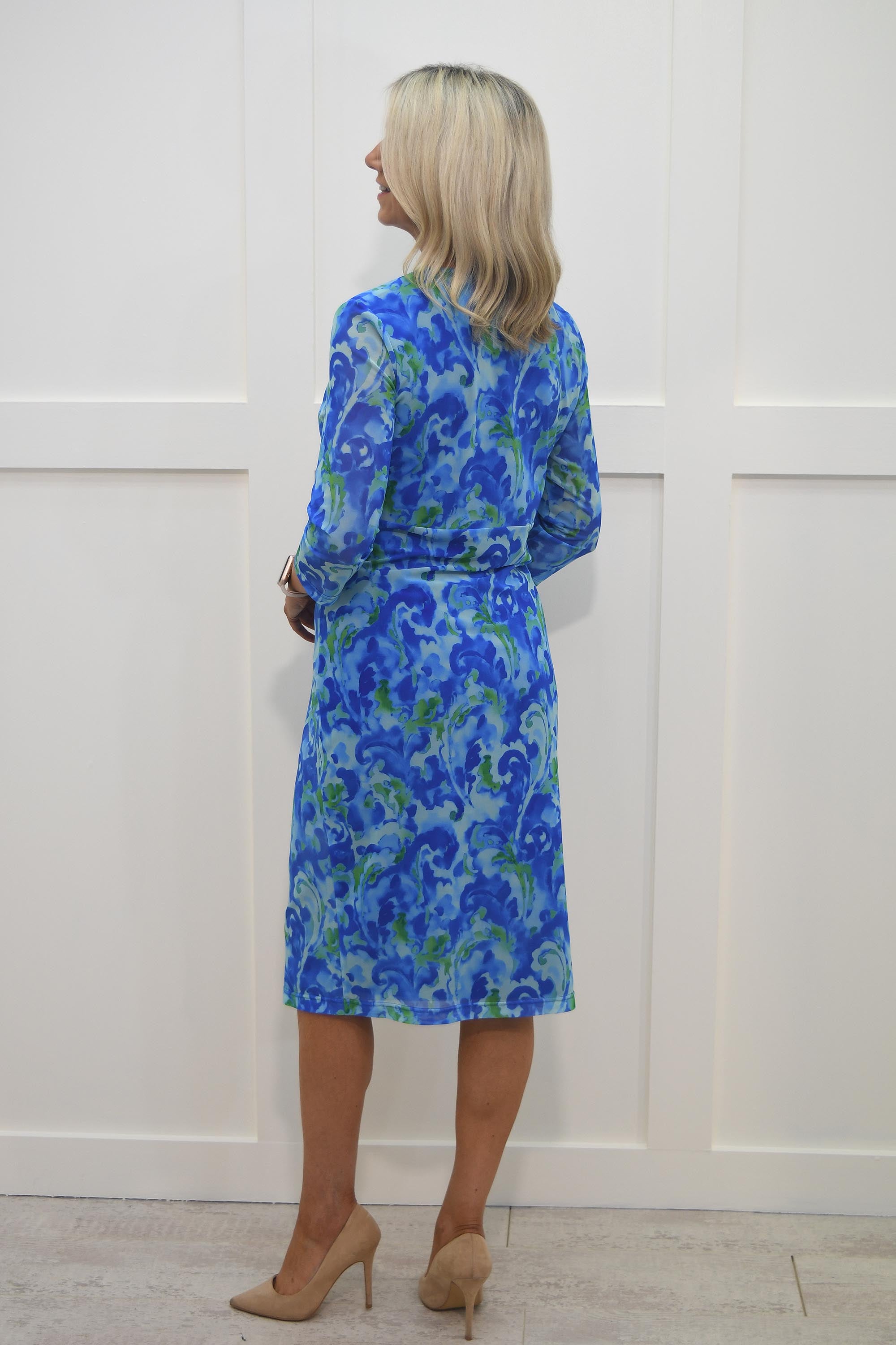 Robe Avalon bleu royal et vert à imprimé abstrait avec boucle - A6733