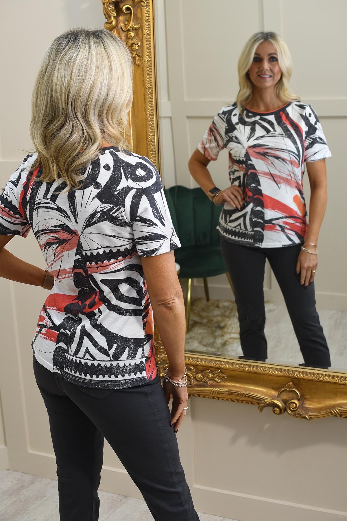 Barbara Lebek Charcoal, Red & Peach Abstract Print Top Description